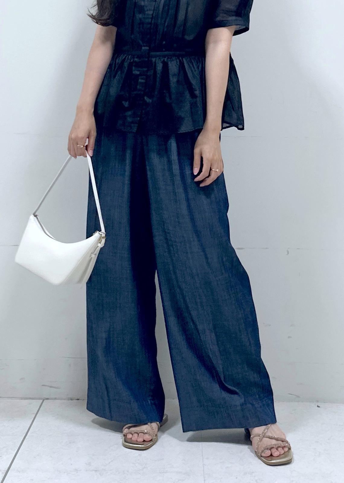 ROPÉ【洗える】テンセルデニムイージーパンツブルー / 36¥27,500レビュー身長162cmで36サイズ着用。