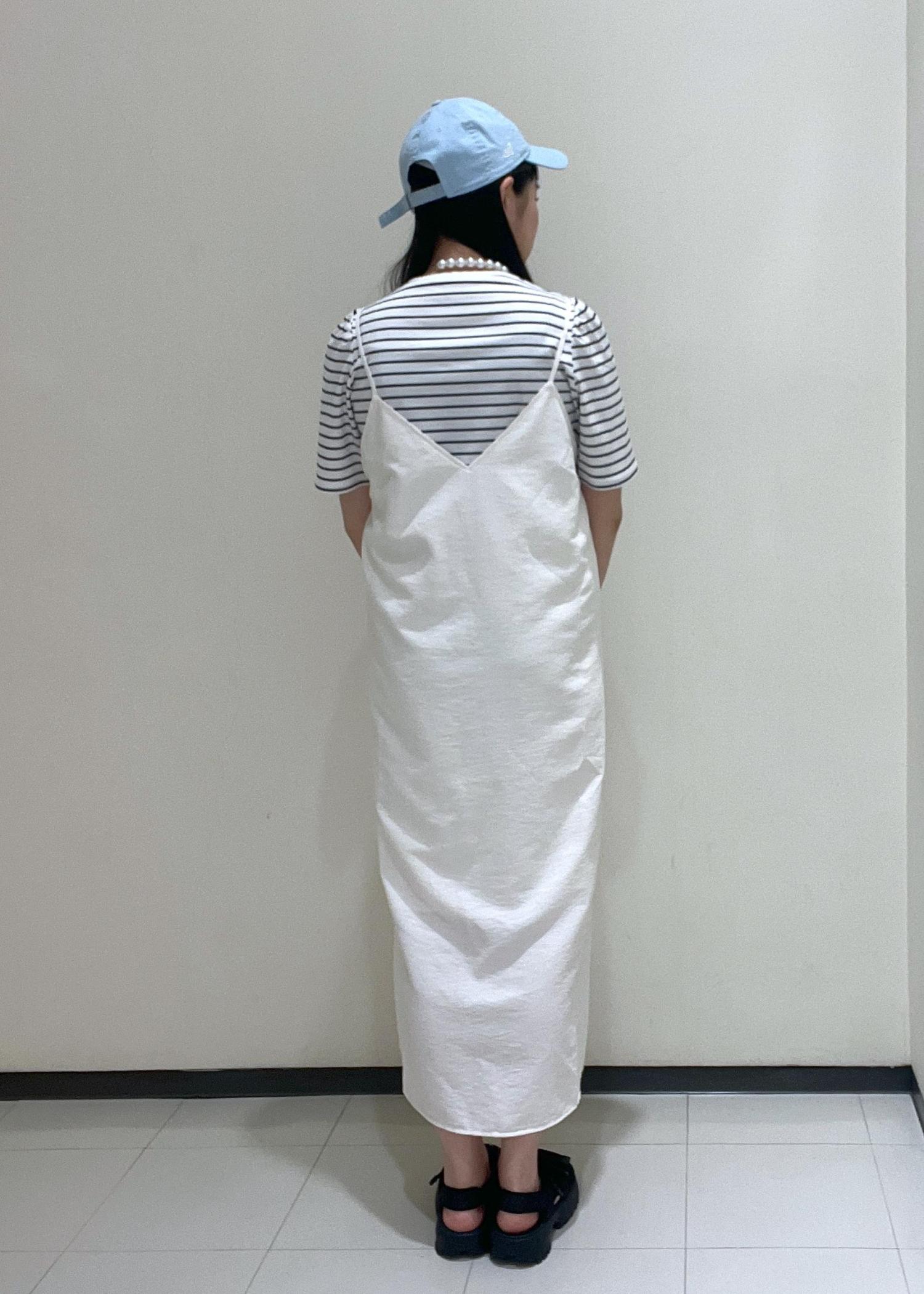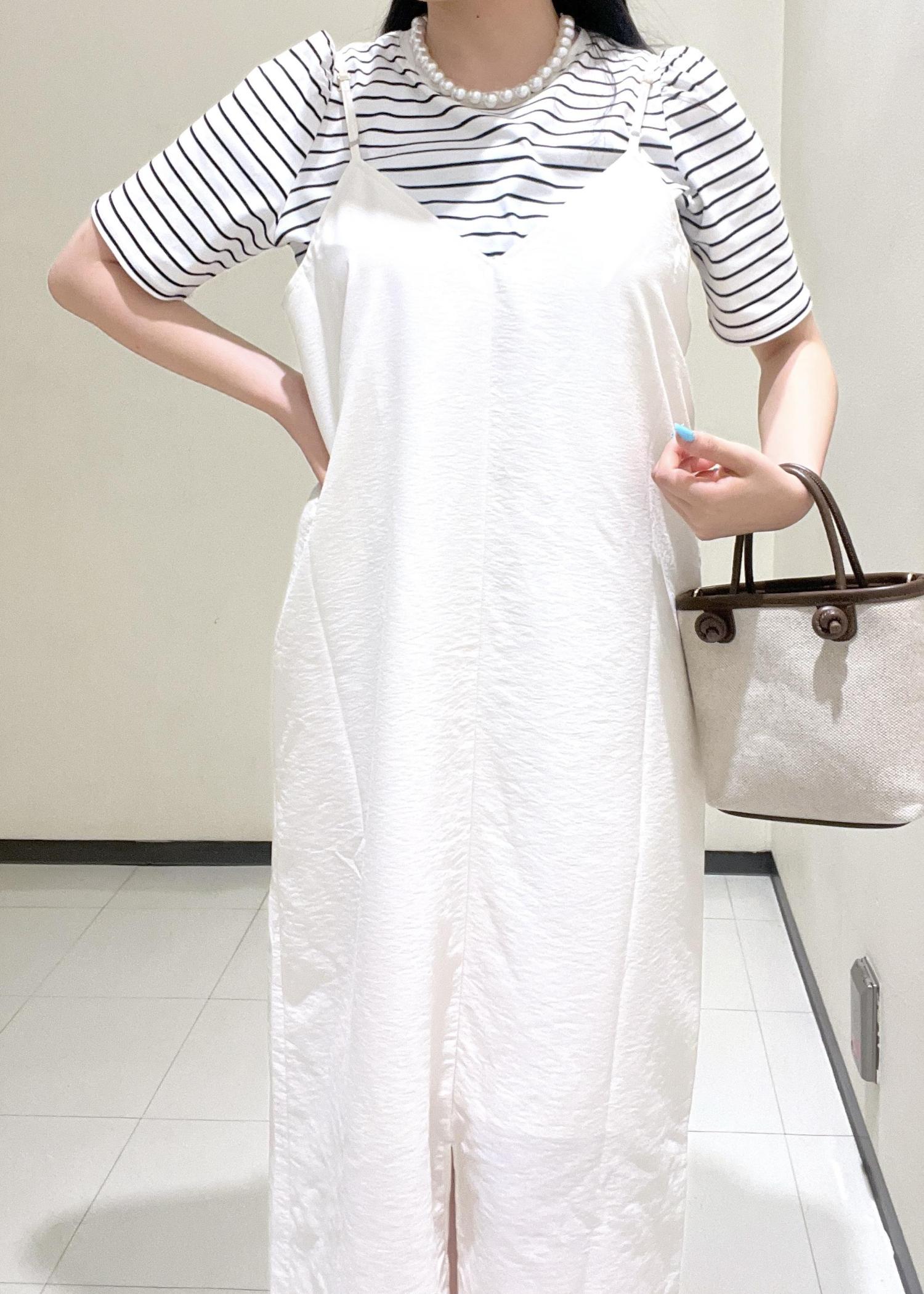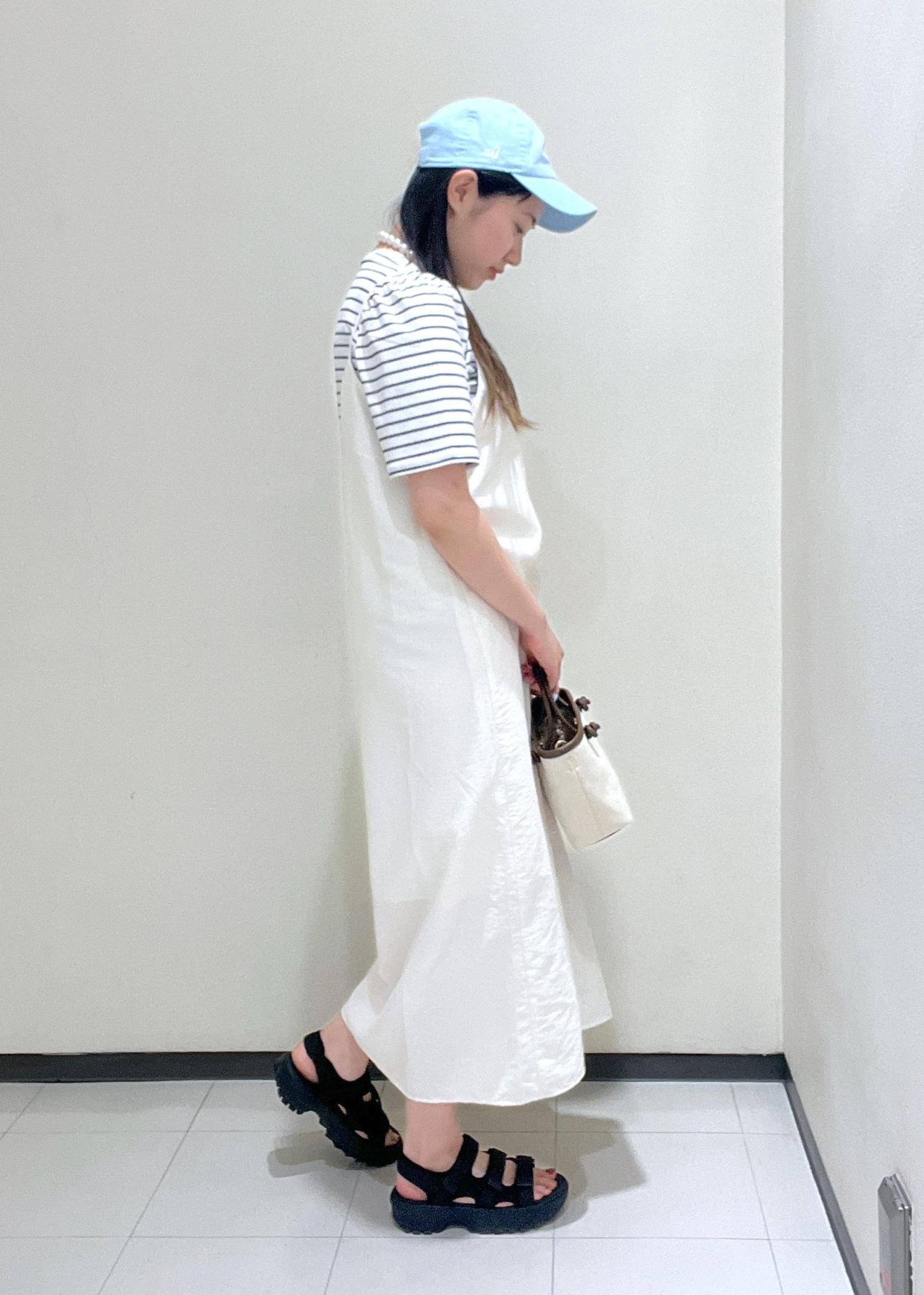 白のキャミワンピースを使って清涼感が感じられるようなコーディネートにしました!