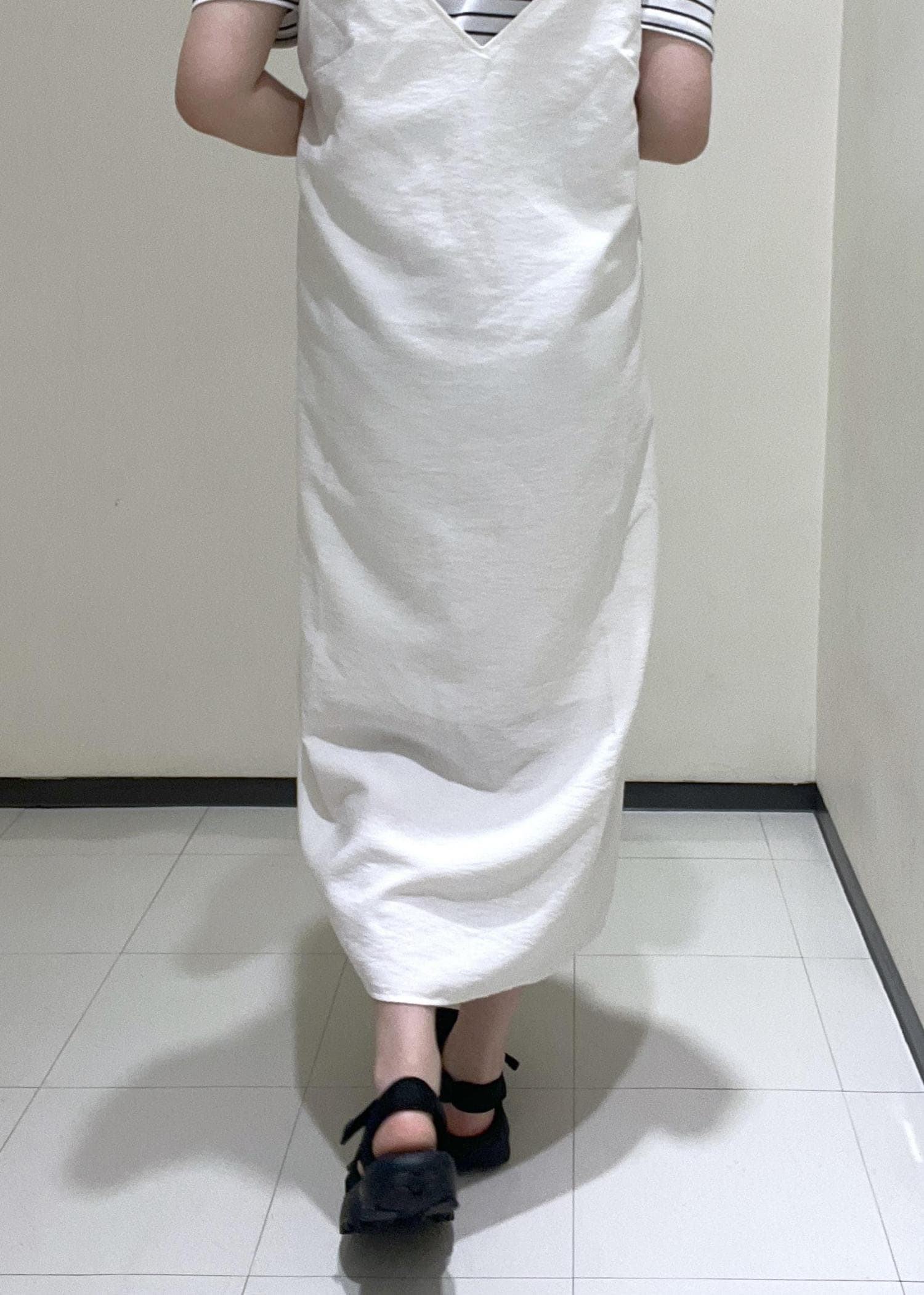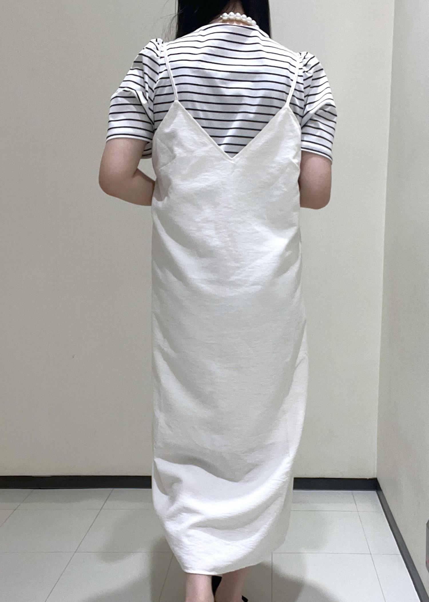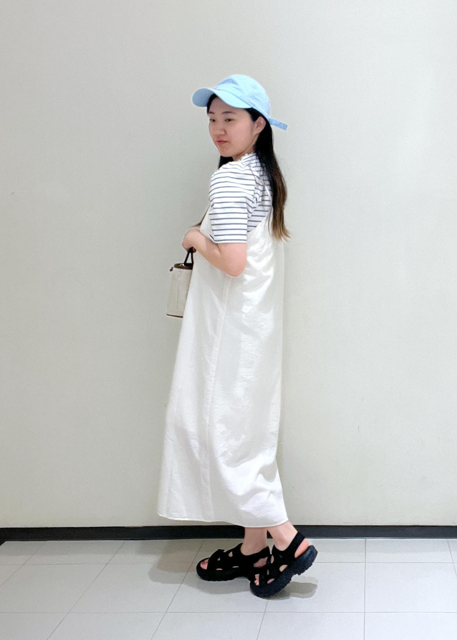 白のキャミワンピースを使って清涼感が感じられるようなコーディネートにしました!
