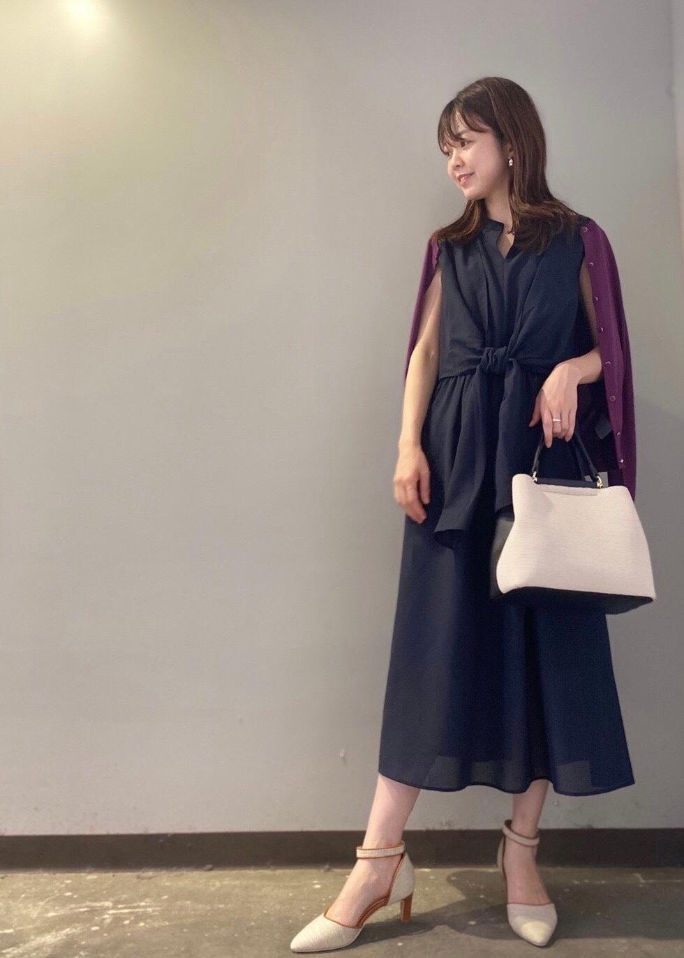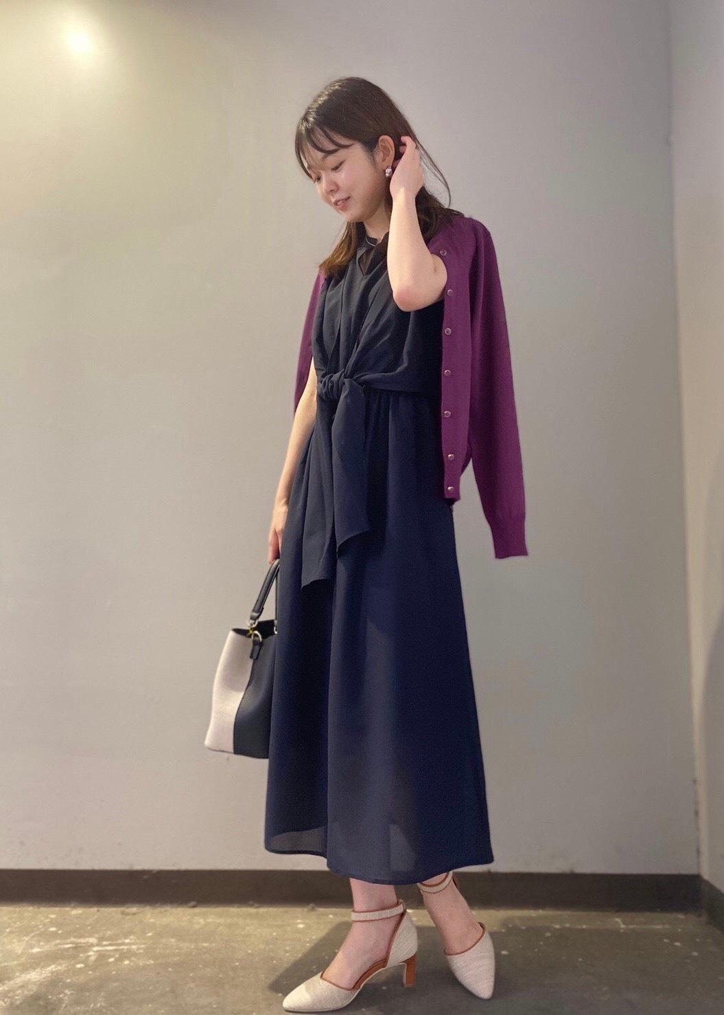 今回はカーディガンですが、バッグや足元に色を取り入れても可愛いくお召しいただけます!
