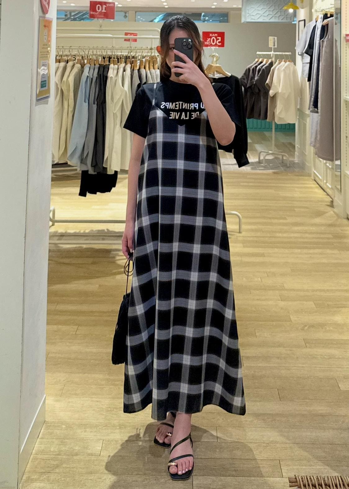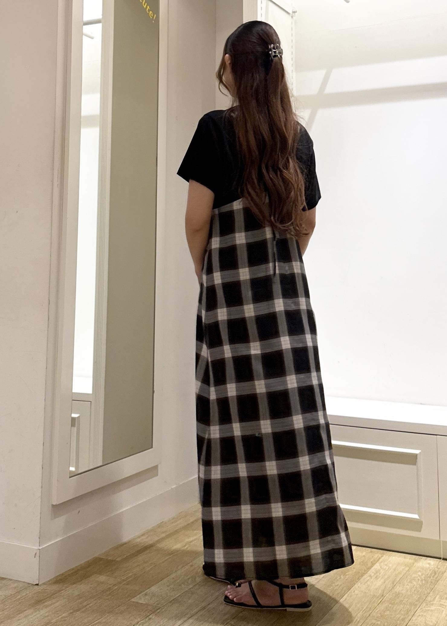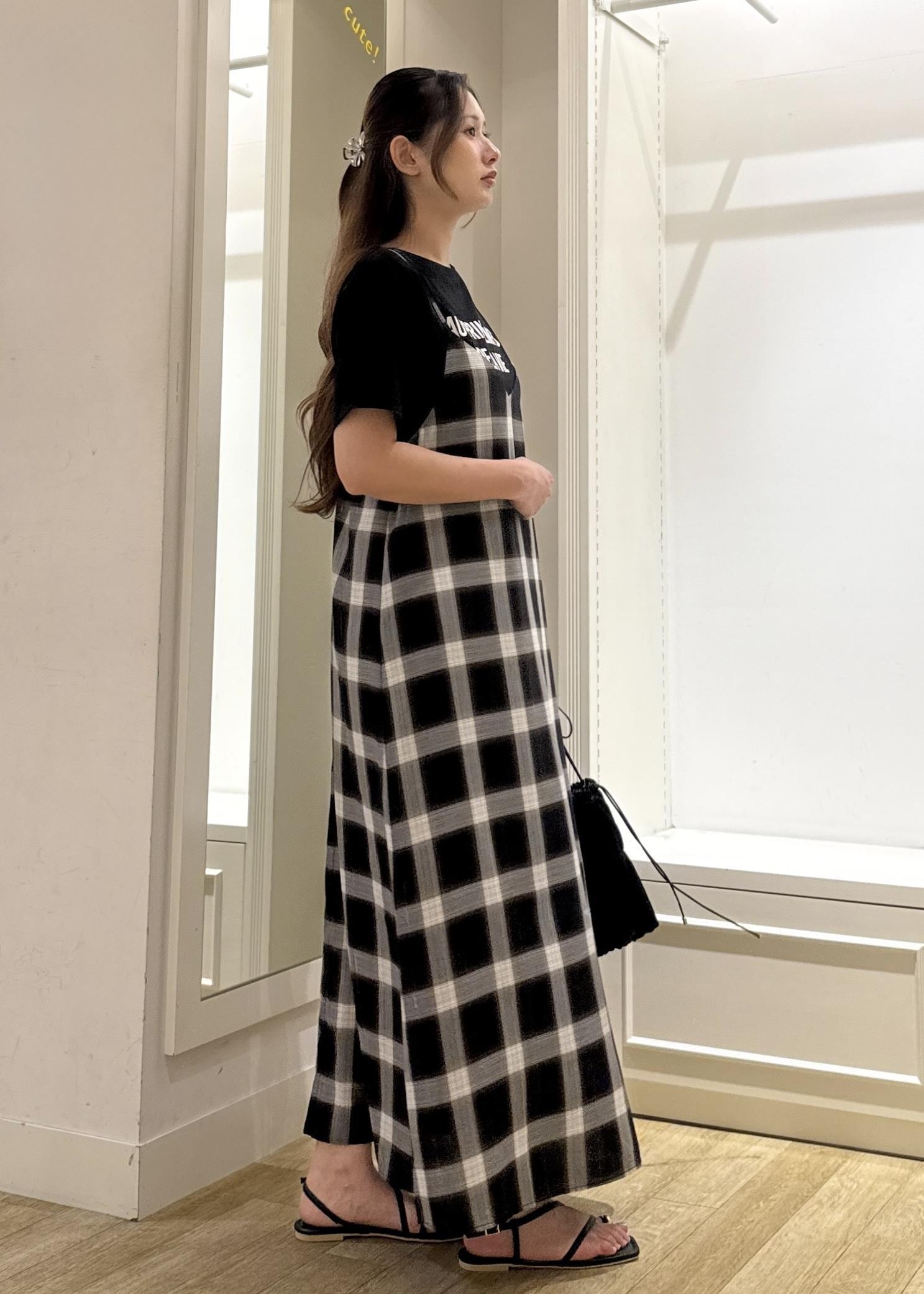 今回は黒のチェックのワンピースに黒のTシャツを合わせて甘すぎないカジュアルガーリーコーデにしてみました!