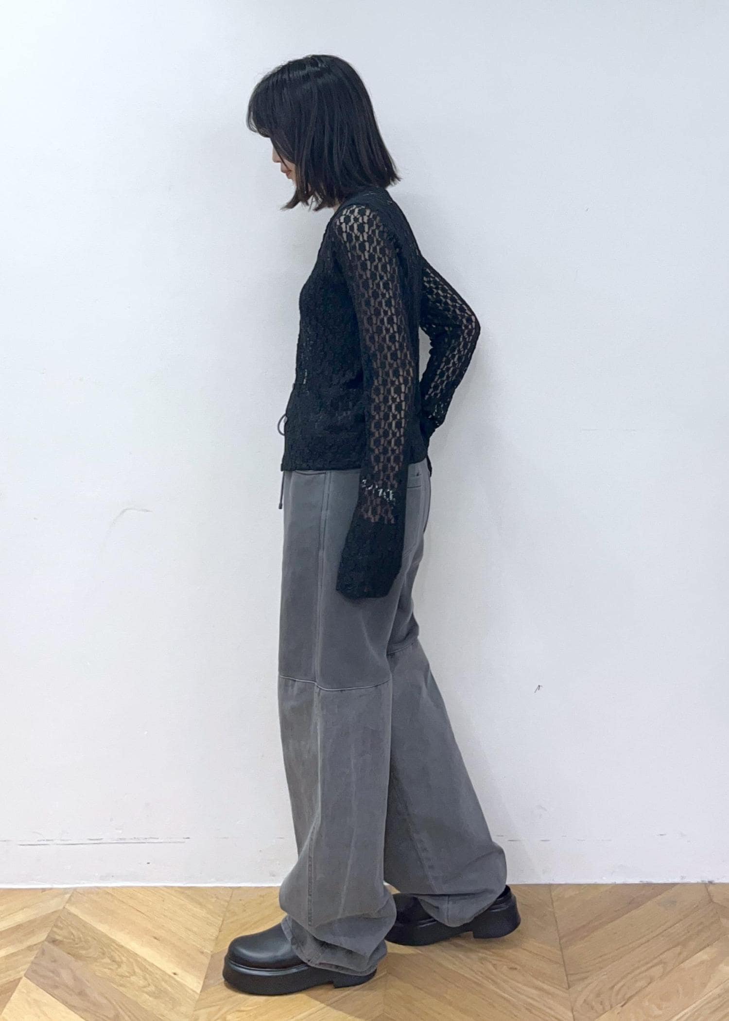ADAM ET ROPÉ FEMME【AMOMENTO for ADAM ET ROPE'】別注DRAWSTRING DENIM PANTSチャコール / S¥30,800レビュー着丈しっかり長めです。足元折って履いても綺麗に履いていただけますが、スニーカーなどでボリューム感を楽しんでも◎