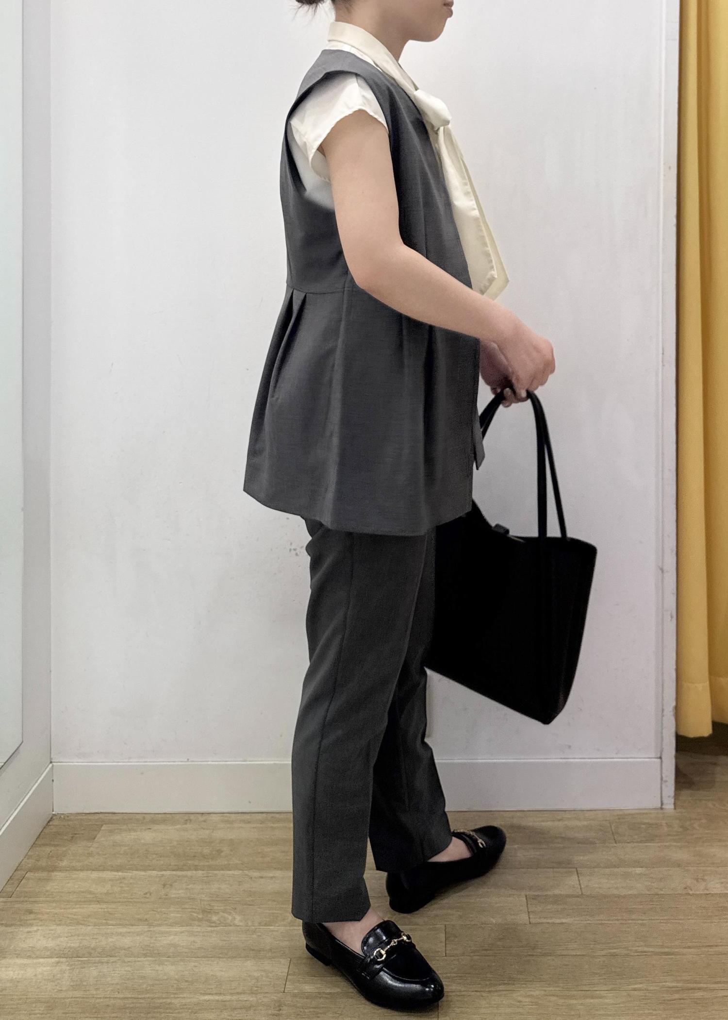 サラッと薄手の素材とスッキリとしたラインのテーパードパンツは夏のお仕事着にもオススメです。 -