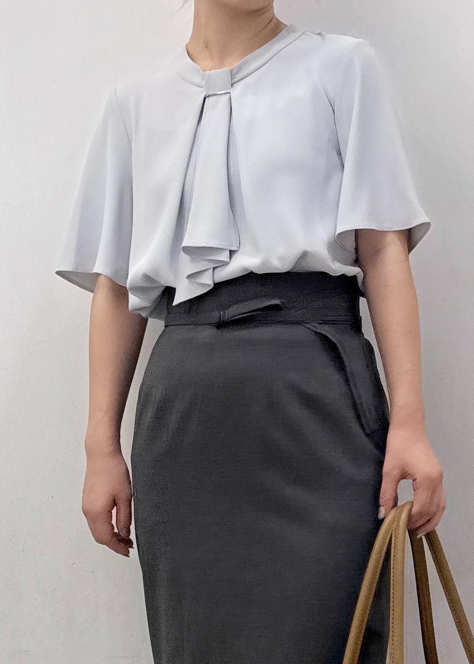 ROPÉ PICNICメタルパーツフロントフリルタイブラウス/通勤対応サックス / 36¥4,389レビュー36サイズで身体のラインを拾いすぎないサイズ感で着られました。