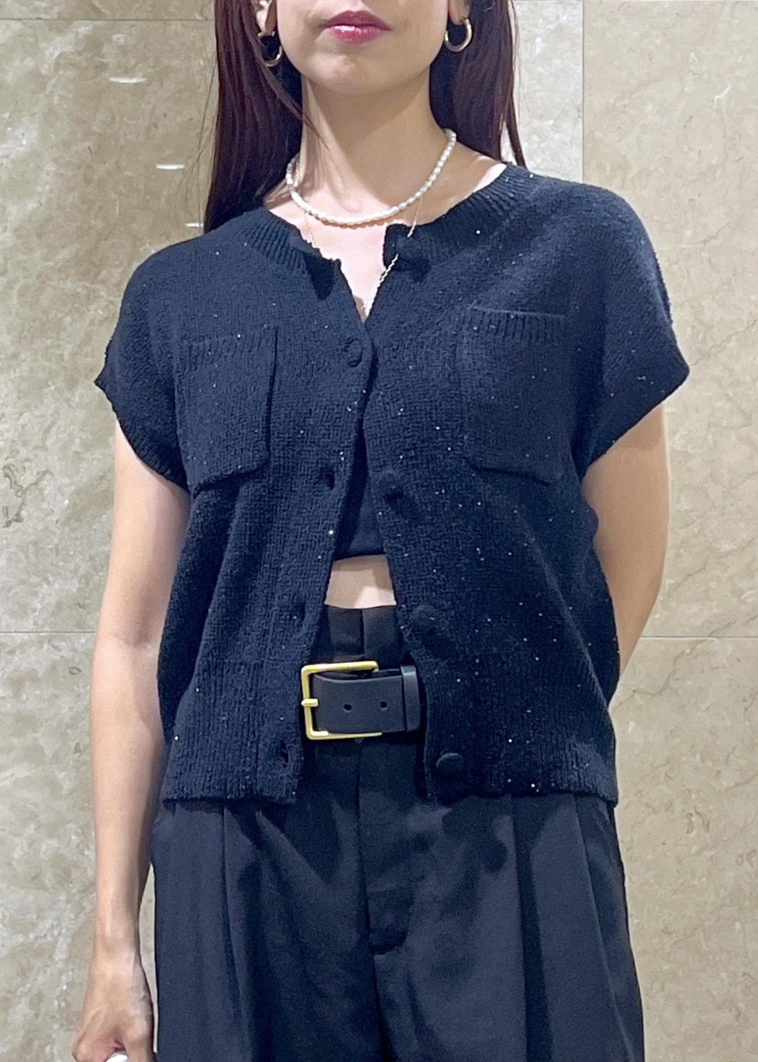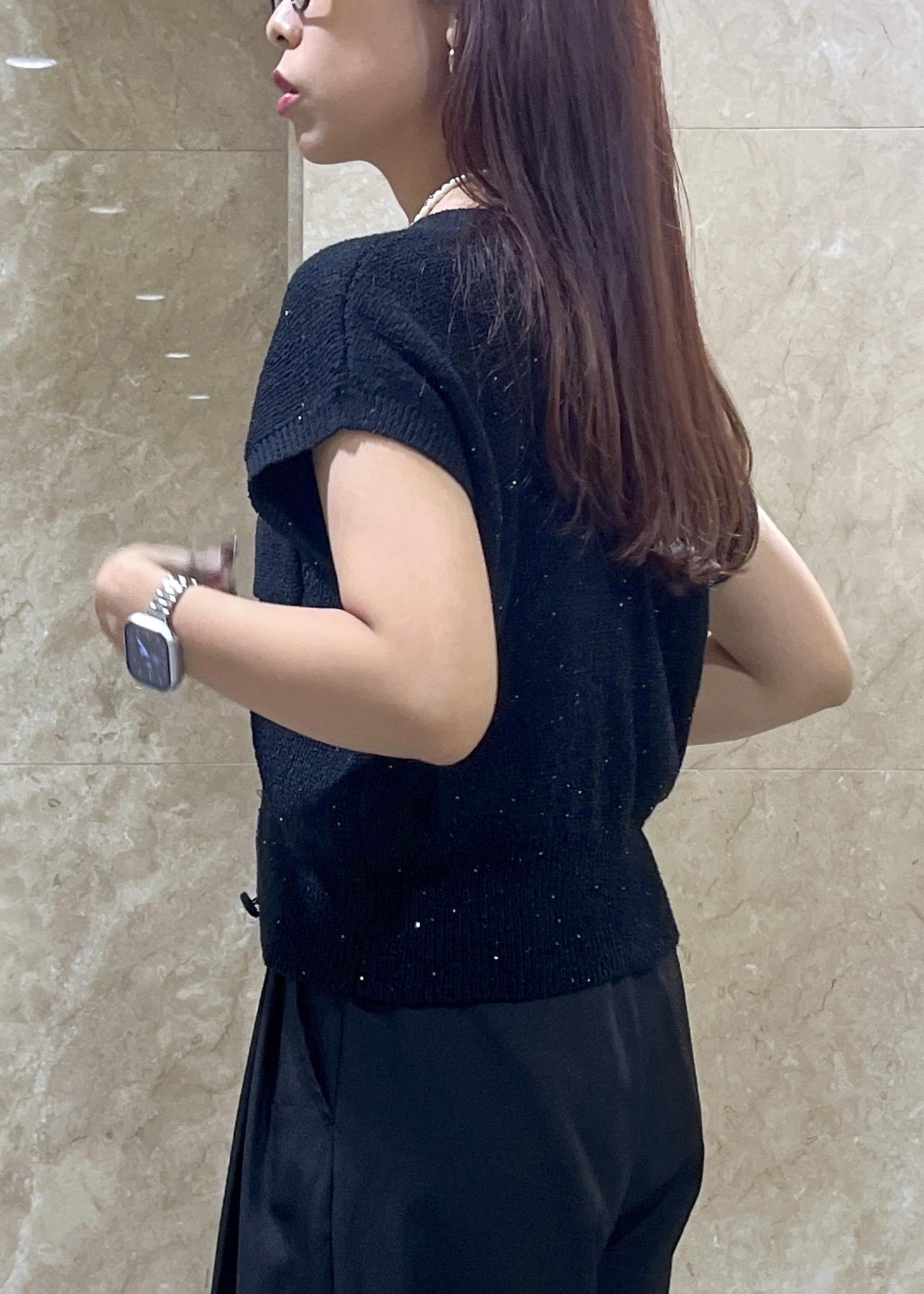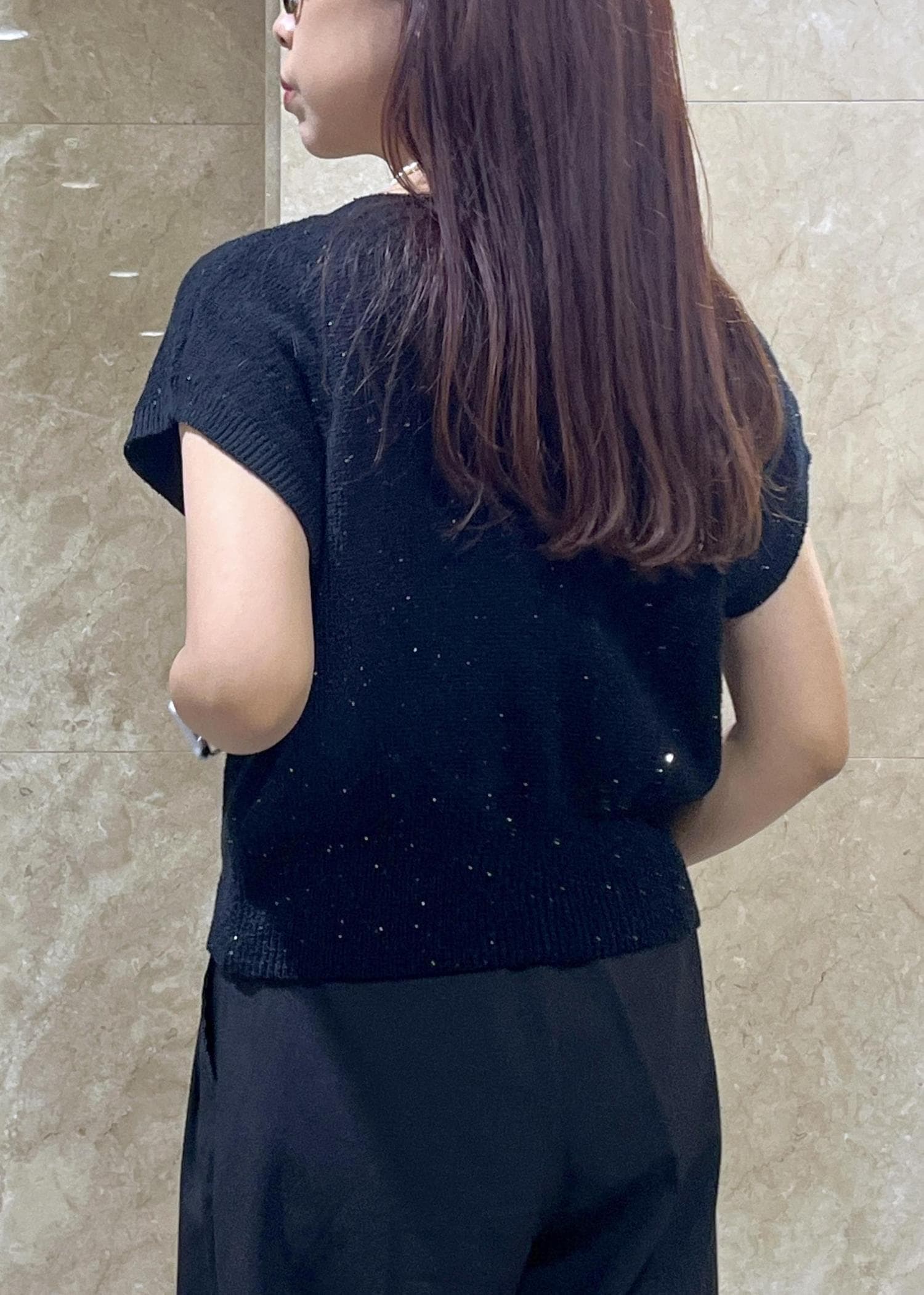 ほどよい厚みがありながら、サラッと清涼感ある素材で、編み込まれたスパンコールもチクチク感なく着用できました◎ -