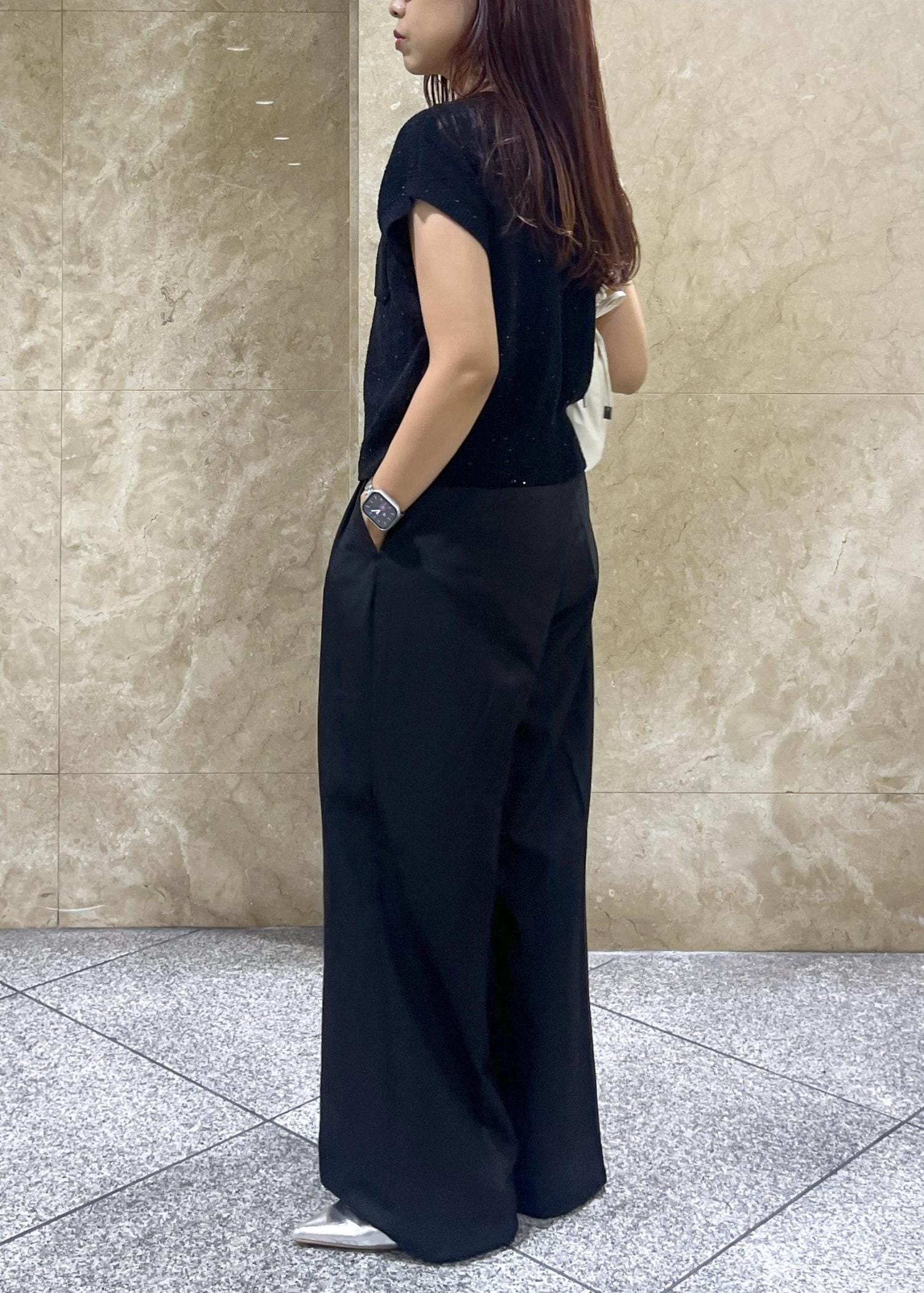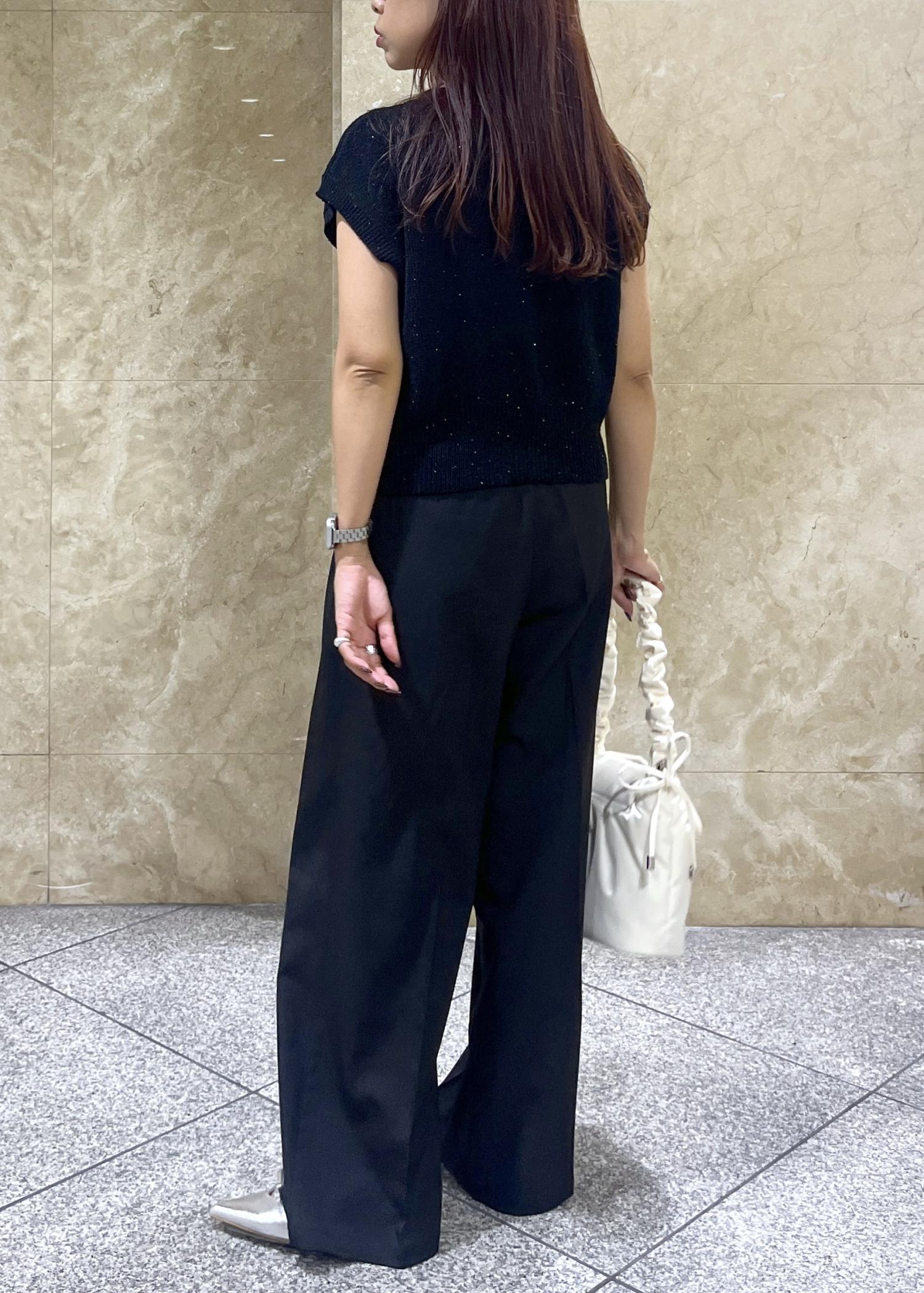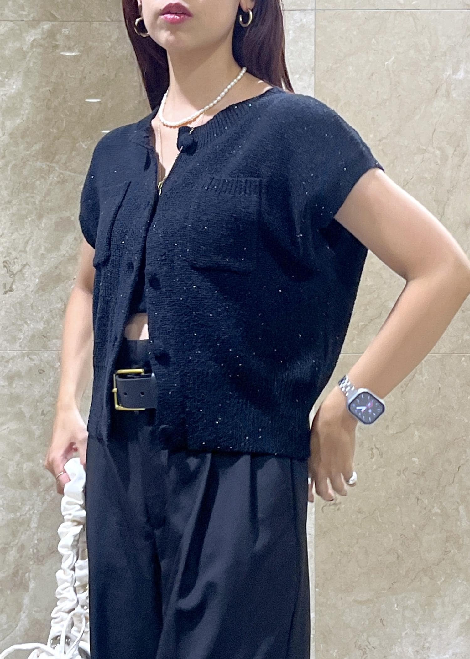 ほどよい厚みがありながら、サラッと清涼感ある素材で、編み込まれたスパンコールもチクチク感なく着用できました◎ -