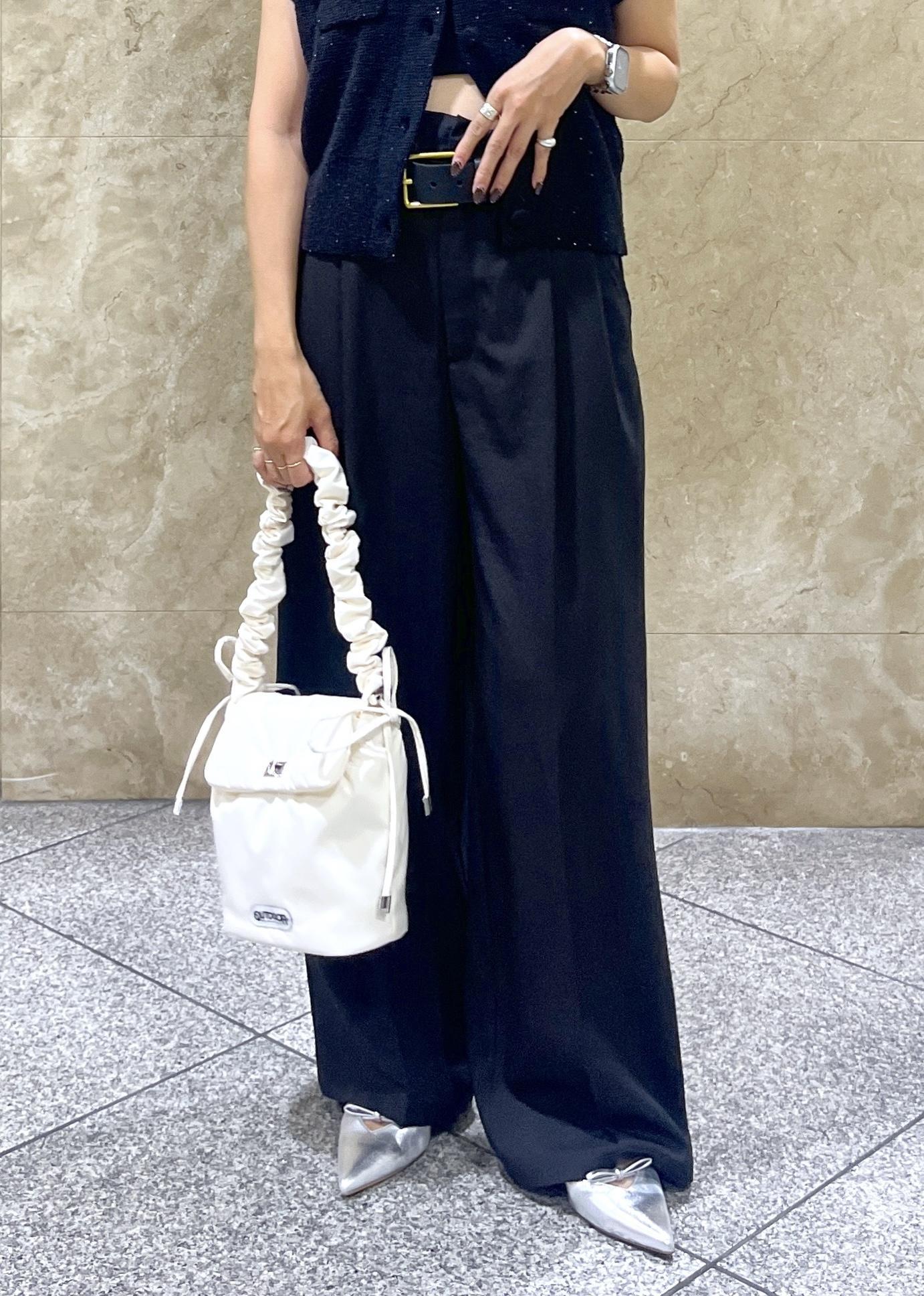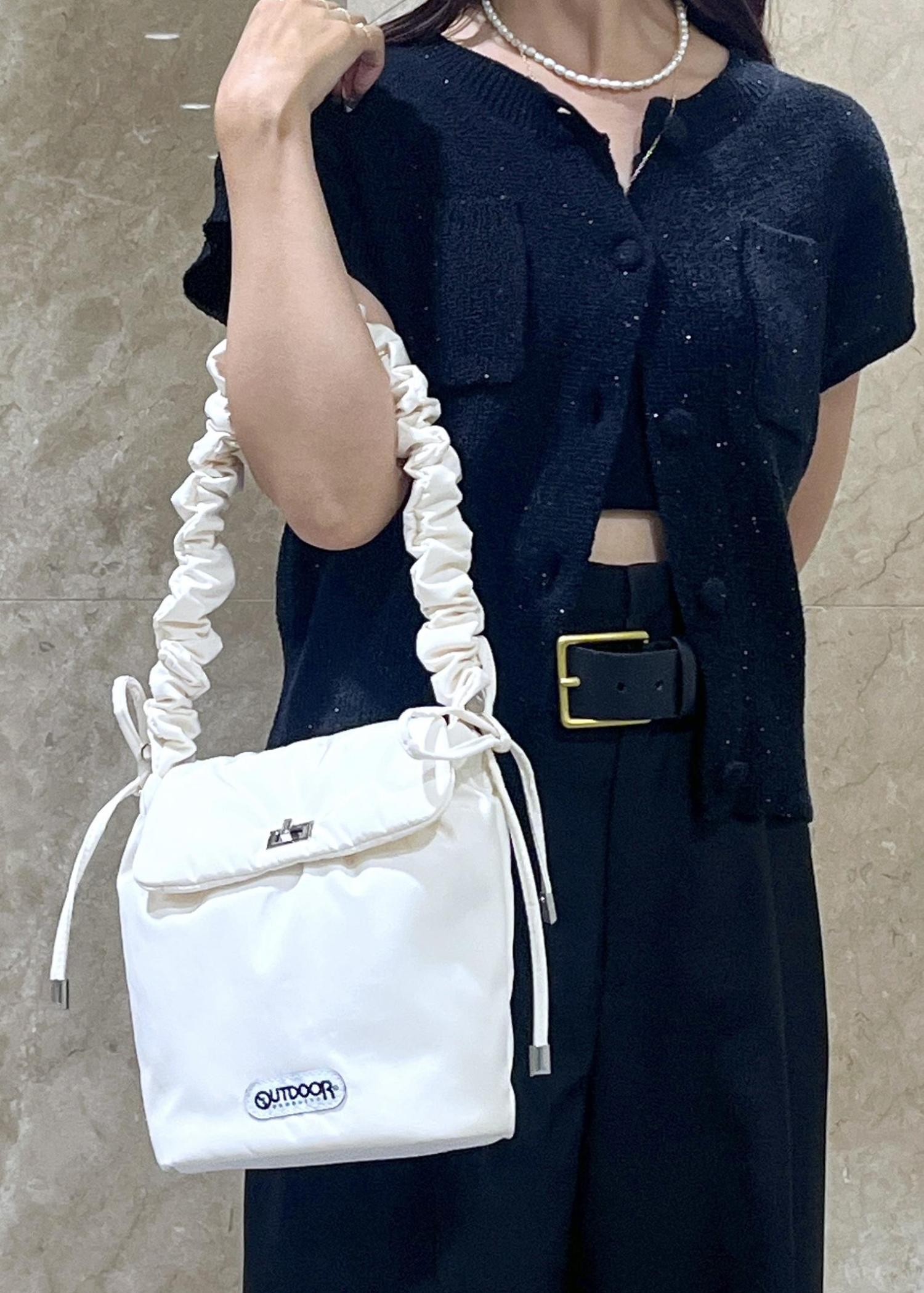 ハンドル部分がクシュクシュと長さを調整できるので、斜めがけはもちろん、手持ちであまる紐部分をリボン結びにして長く垂らしても可愛い。 -