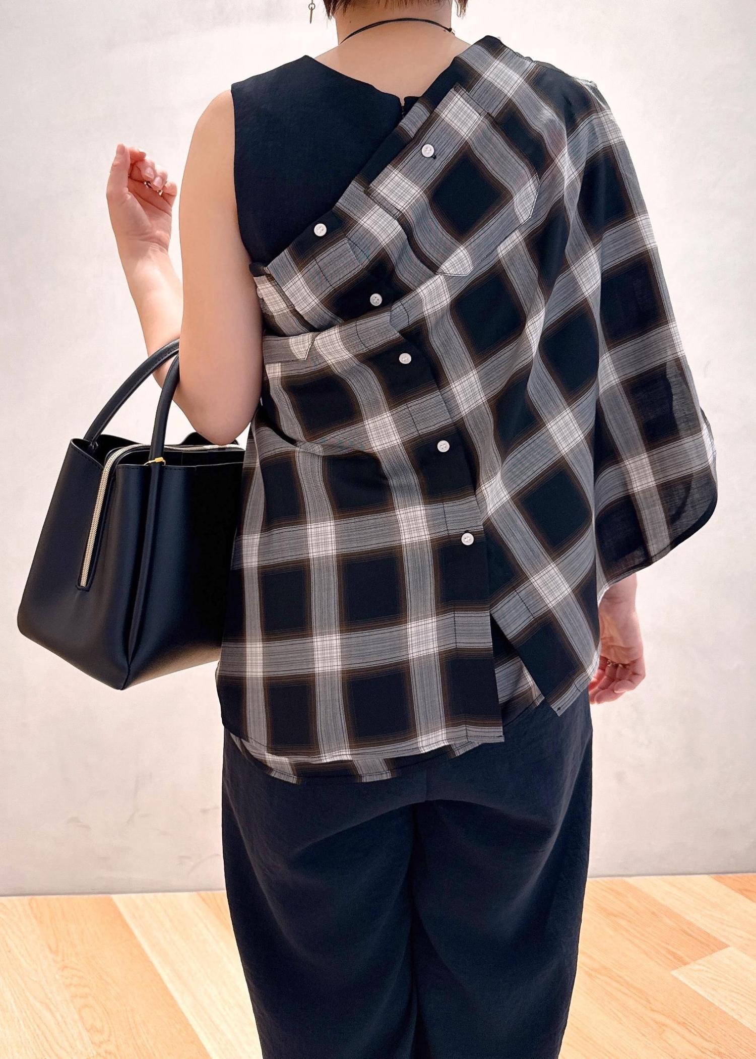 ですが、そのままだとシンプル過ぎるので、チェックのシャツを巻いてちょっとオシャレに⭐︎