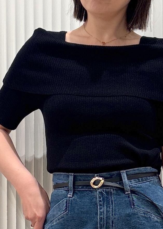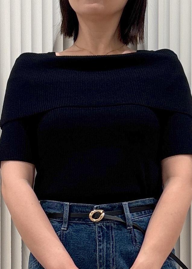 VIS【アンチピリング/UVケア/洗える】オフショルハーフスリーブニットブラック / F¥4,939レビューリブニットですがぴったりしすぎず、袖丈もハーフスリーブなのでボディラインを気にせず着ていただけます