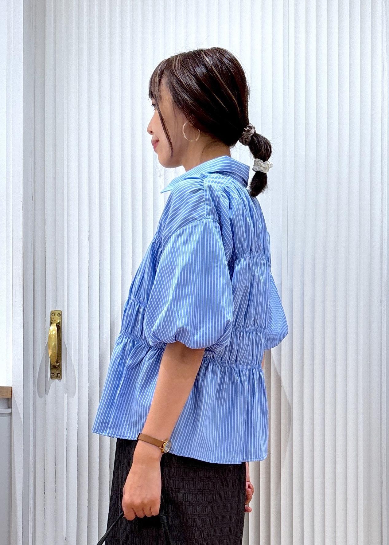 VIS【新色追加】【店頭人気】シャーリングバルーンシャツブルー系 / F¥5,489レビューシャーリングが背中側まで入っており、身体のラインをすっきり見せてくれます。