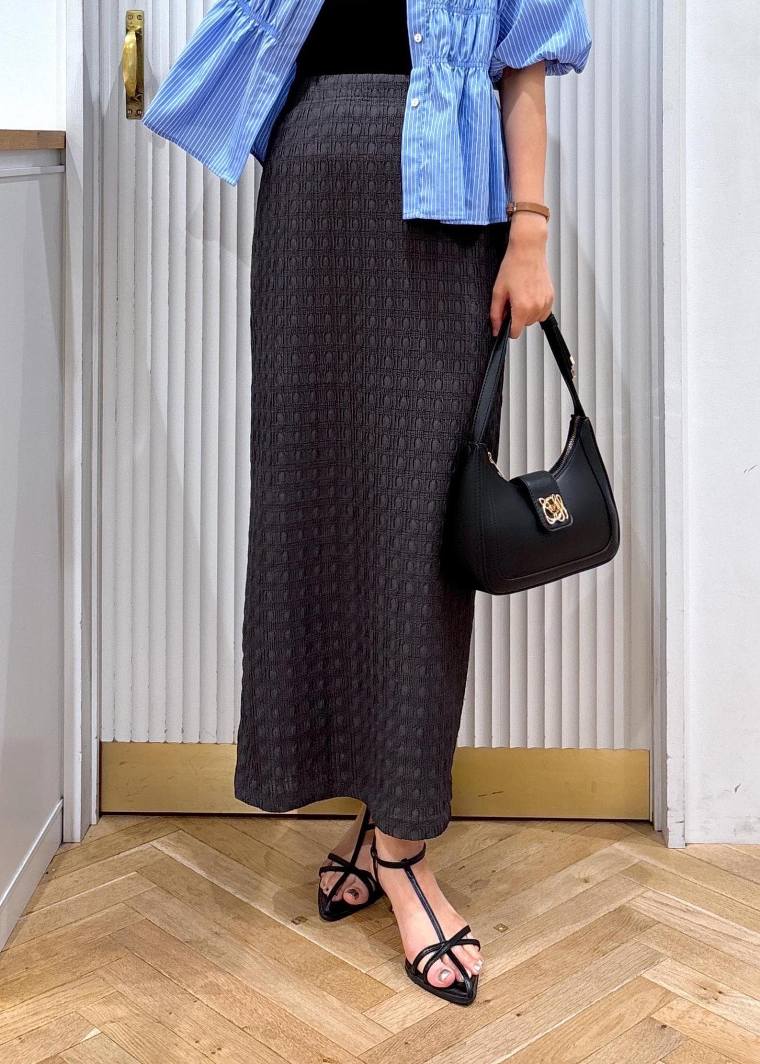 アウトレットVIS【新色追加】【接触冷感】膨れジャガードナロースカートチャコール / F¥3,293レビュー164センチで足首にかかる着丈でした。