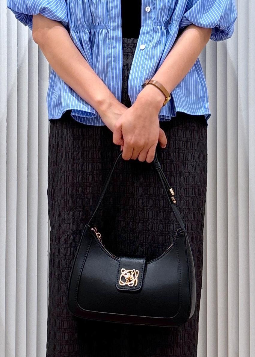 VIS【180℃美人見え】ハンドルリボンワンショルダーバッグブラック / F¥5,929レビューシンプルで、合わせやすいデザインです。