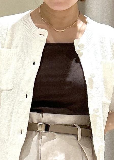 夏にブラウン最近流行っているので「トップスでいきなりブラウンは少し勇気がいる、」という方ににインナーでぜひ使ってみて欲しいです!