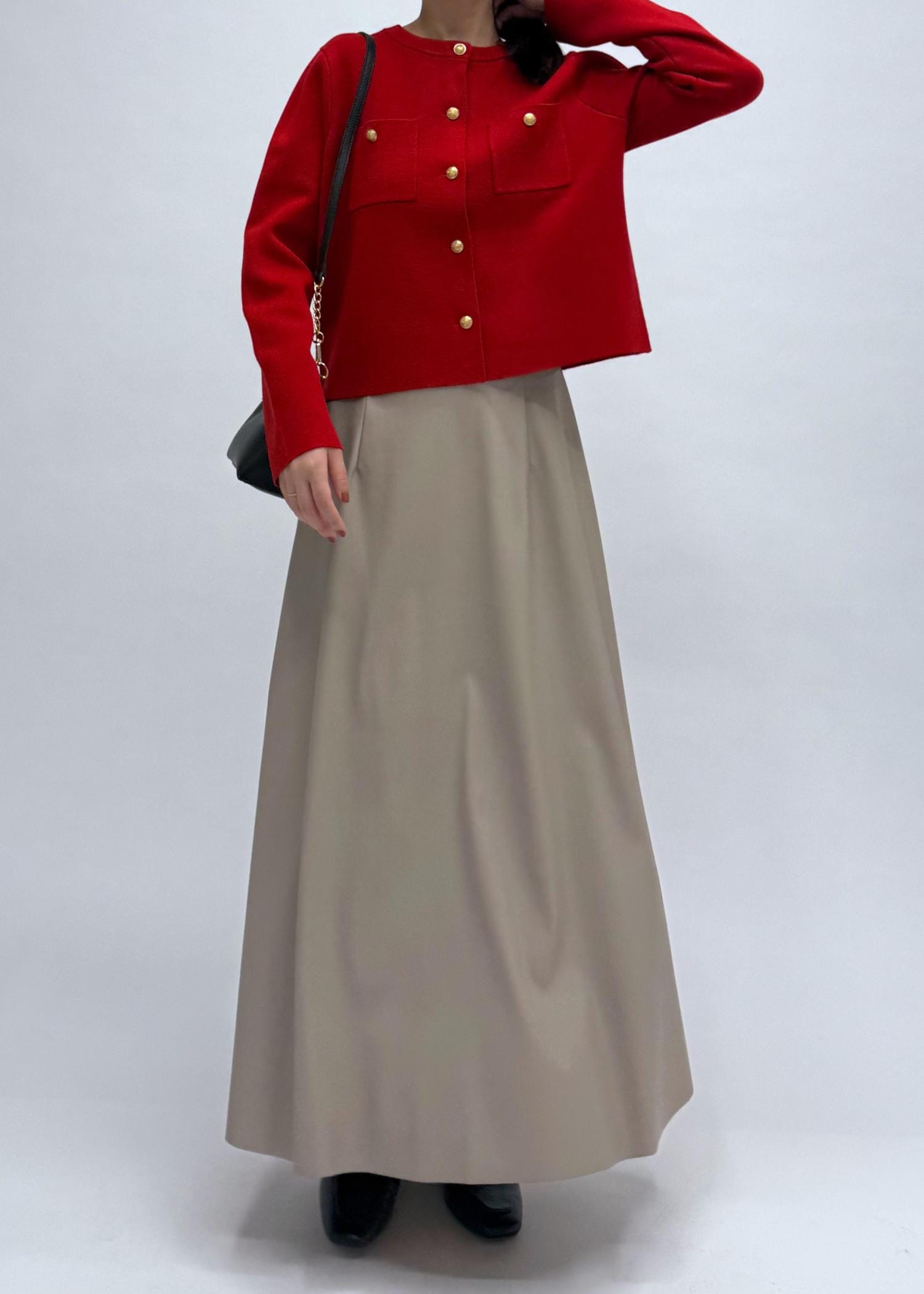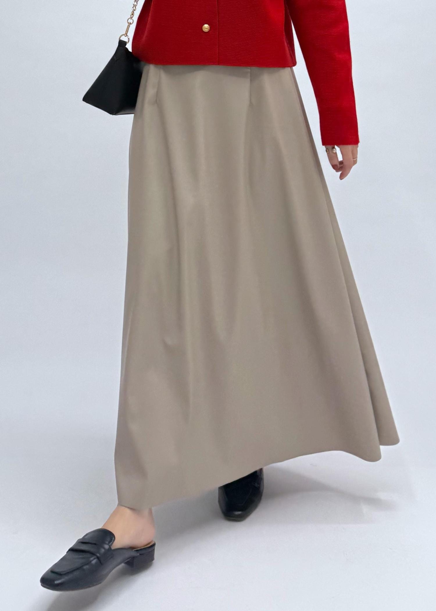 ROPÉ PICNICシンセティックレザーフレアロングスカートベージュ / M¥4,994レビューしっとり感のあるレザーで嫌なテカリはなくマットな生地。緩やかなAラインなので上品さがあります。着丈は162㎝でくるぶしより少し上くらいだったので秋冬はミドルブーツと合わせたりしたいです。