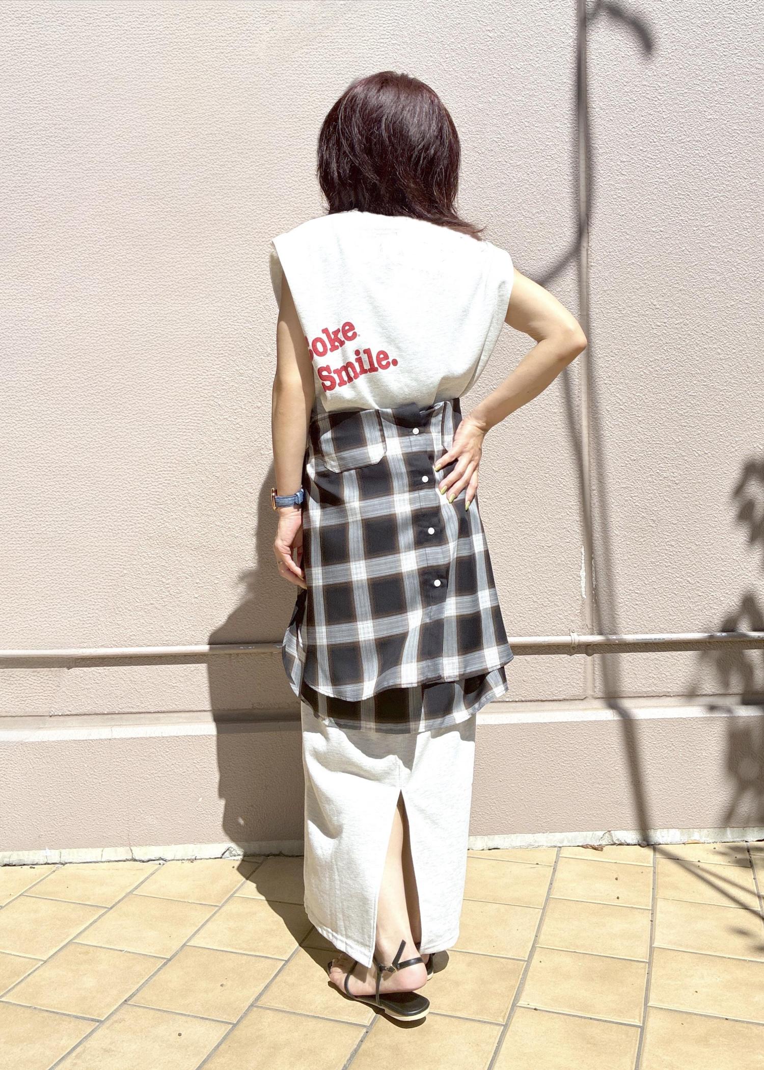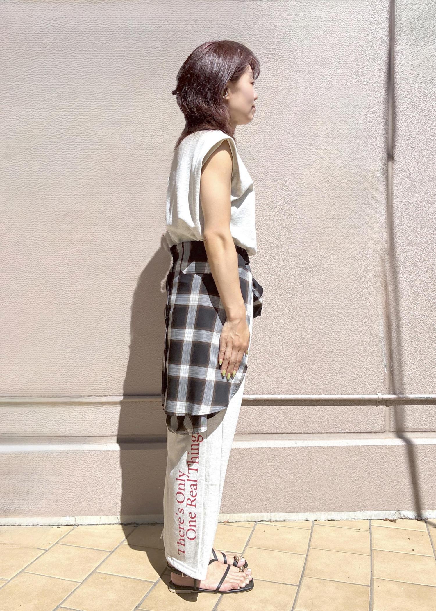 着心地:カジュアルになりがちなチェックシャツですがぼかしチェックととろみのある生地で女性らしく着ていただけます。 -