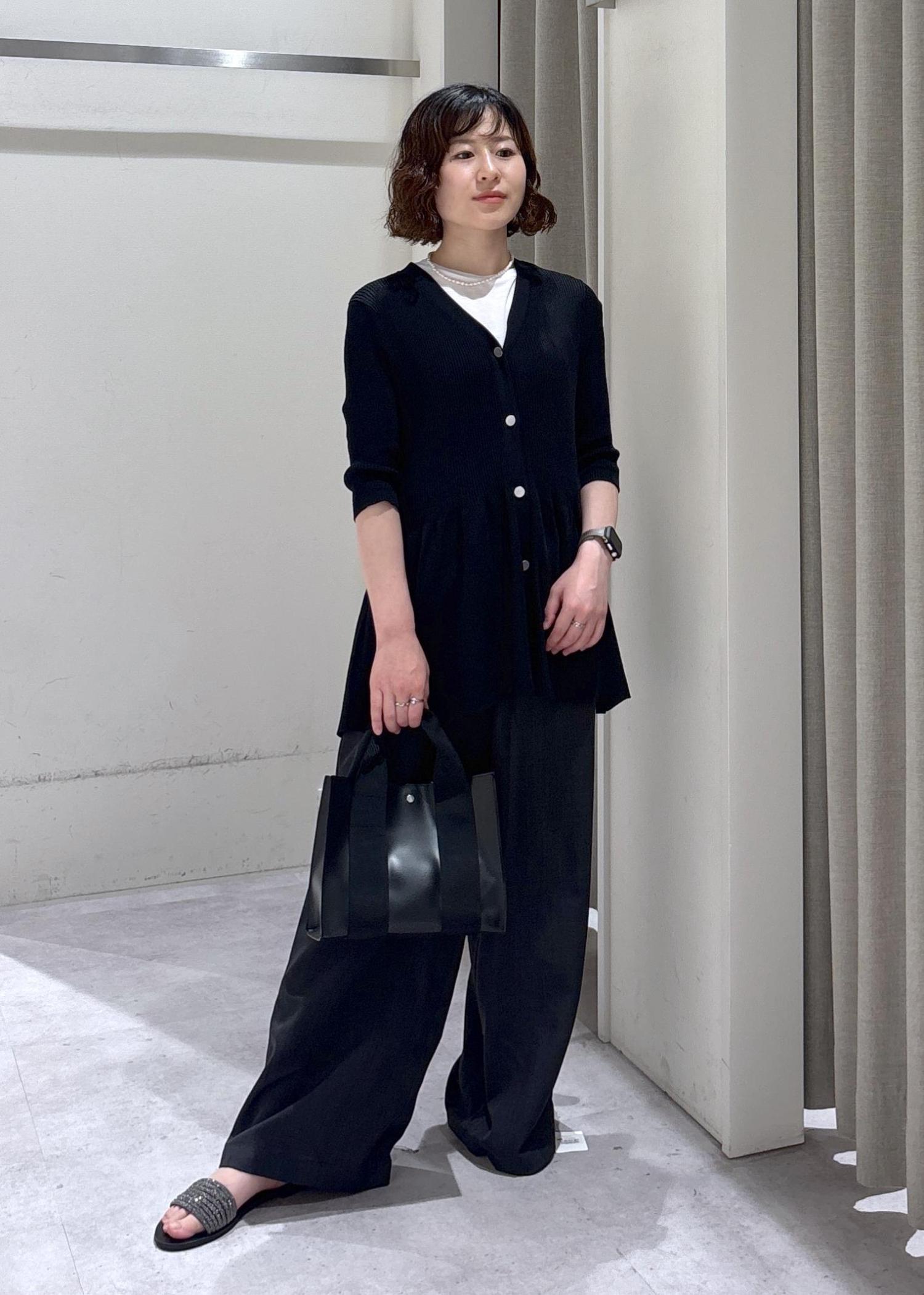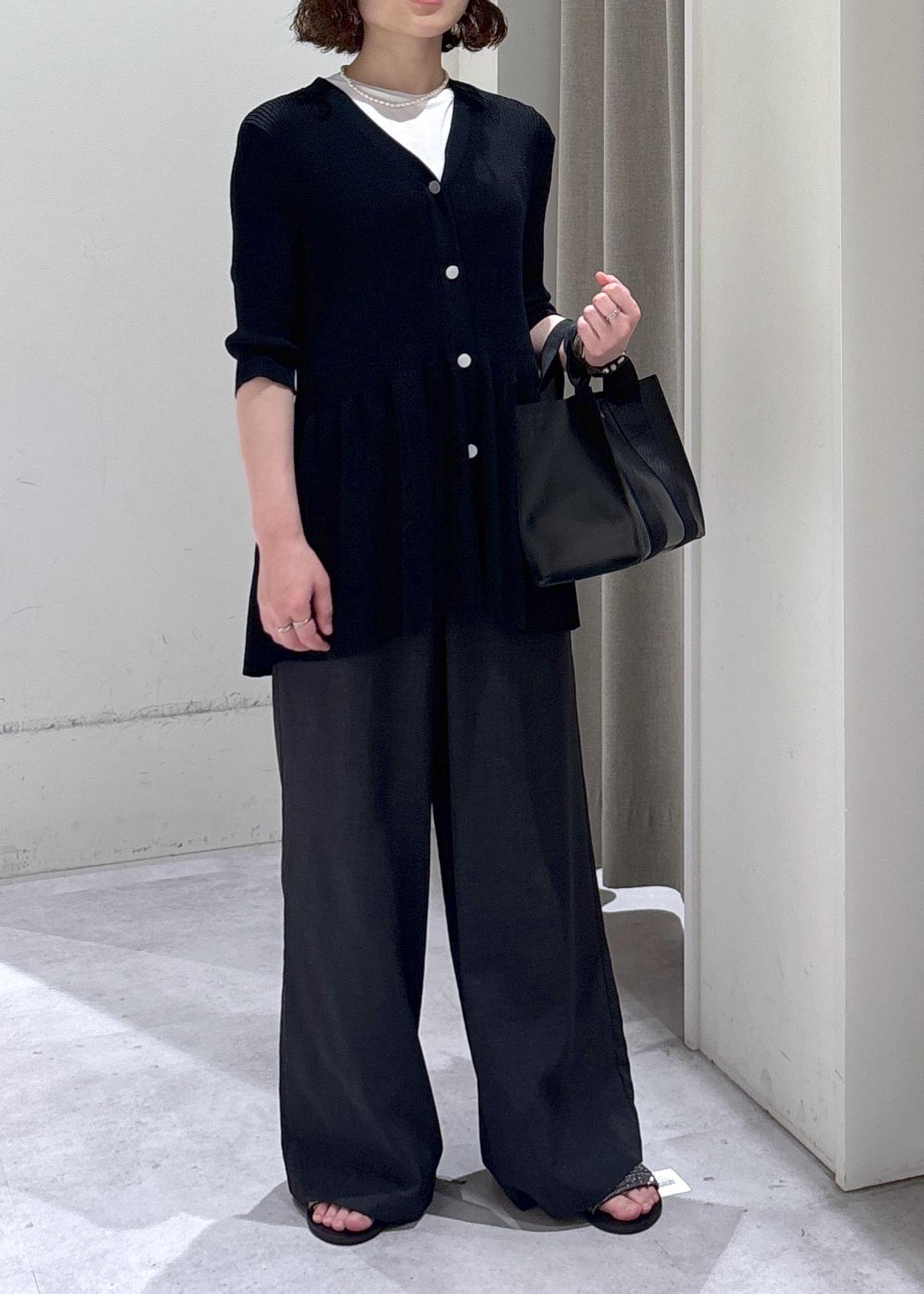 カーディガンはペプラムデザインで腰回りの体型もカバー