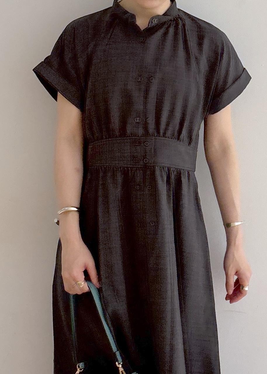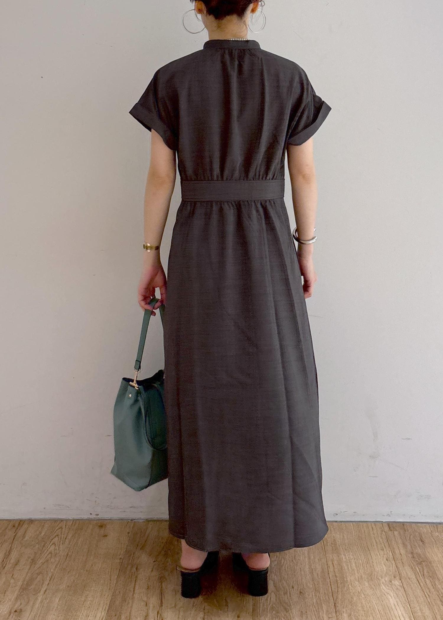 シルエットがきれいなワンピースです。一枚で着映えするので、コーディネートに悩みません。小物合わせで印象も変えやすいので、様々なシーンにご活躍いただけます。