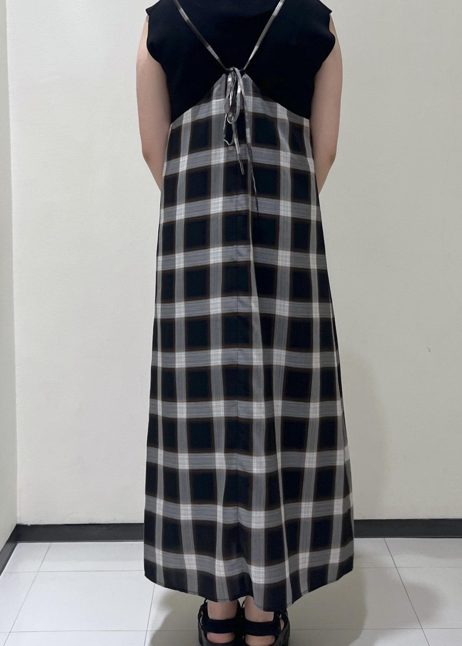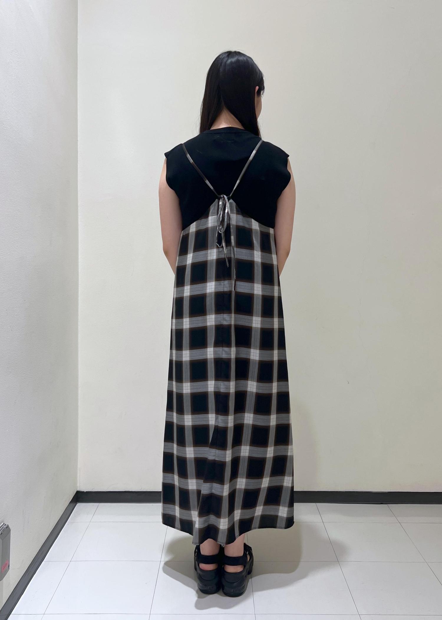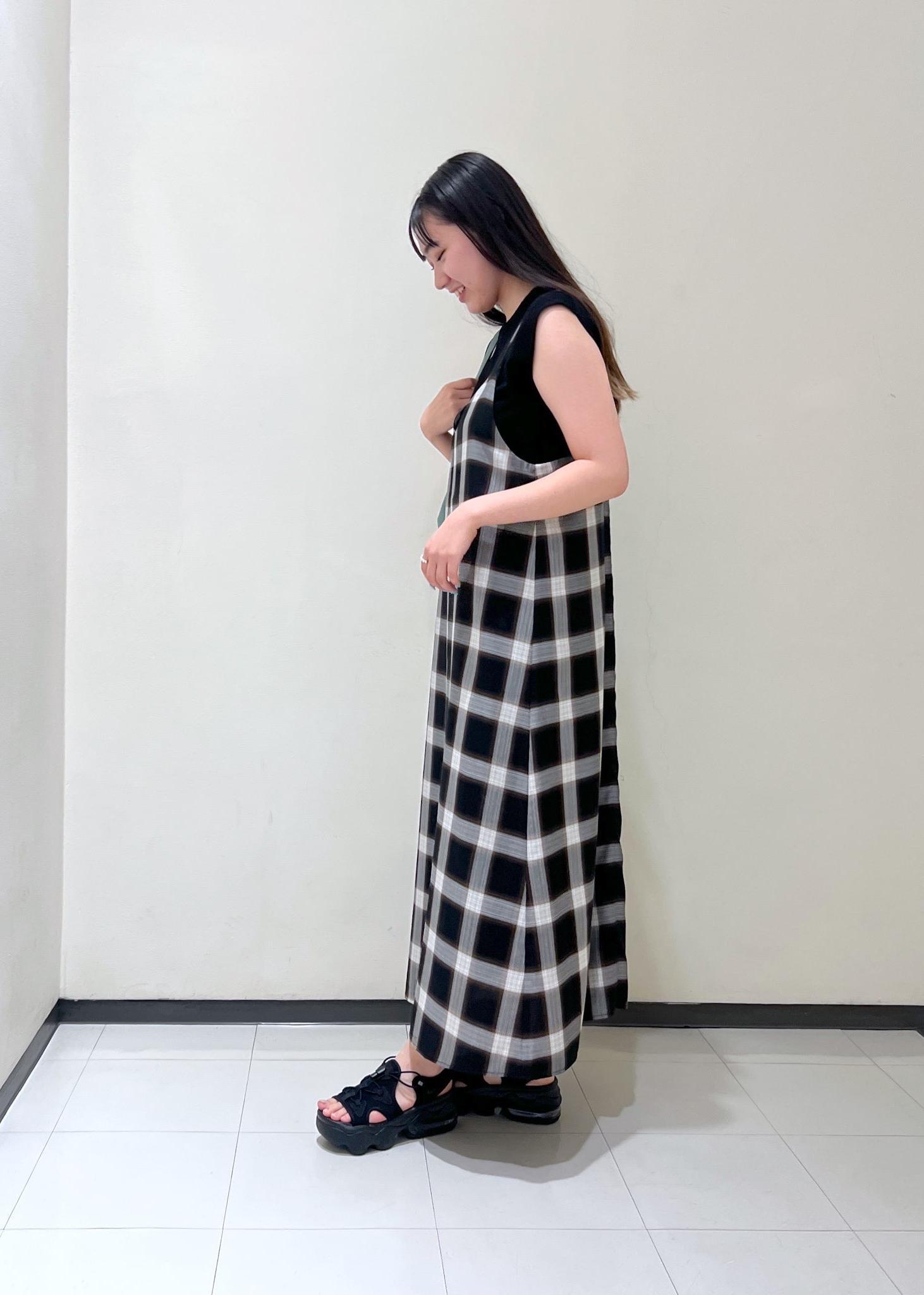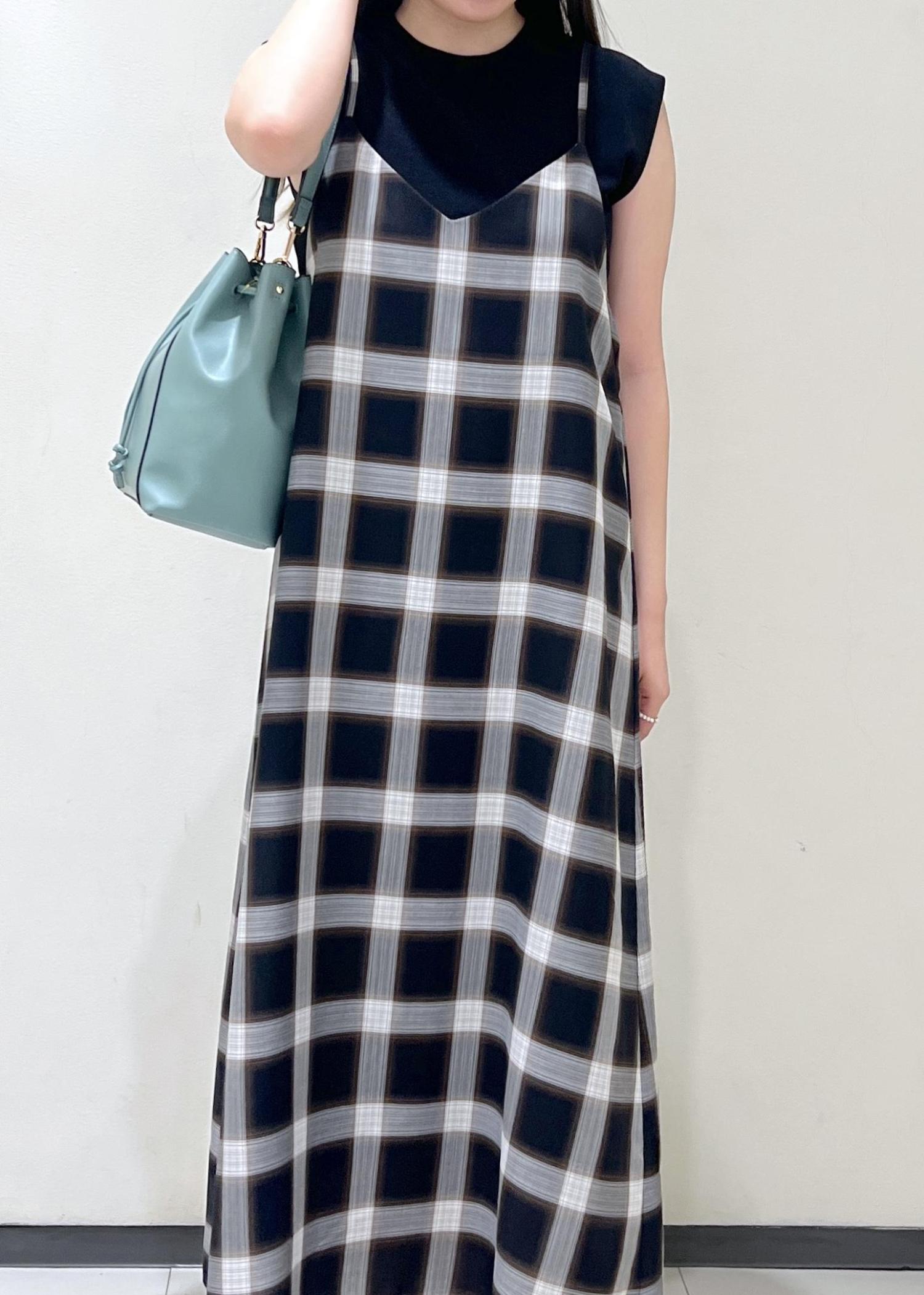 チェック柄キャミワンピコーデ
