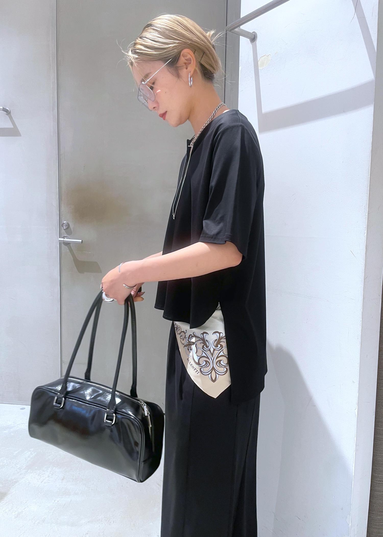 楽ちんトップス×ボトムスですが、スカーフをアクセントにコーディネートをしてみました。
