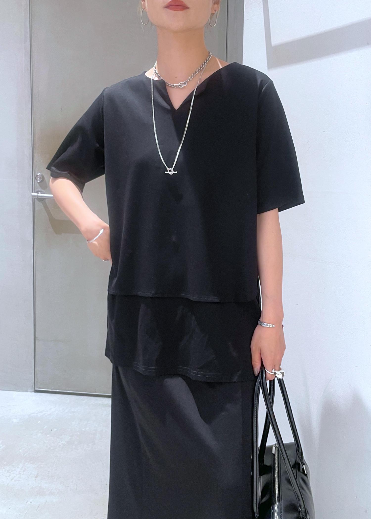 LE CERCLE par ropé2WAYヘムカットプルオーバーブラック / F¥2,596レビュー袖を通した瞬間に即時に伝わる冷たさが素肌にとても気持ちがいいです。程よく身幅がありますが、シルエットはコンパクトな見た目に仕上がり一枚着で簡単お洒落を楽しめます。