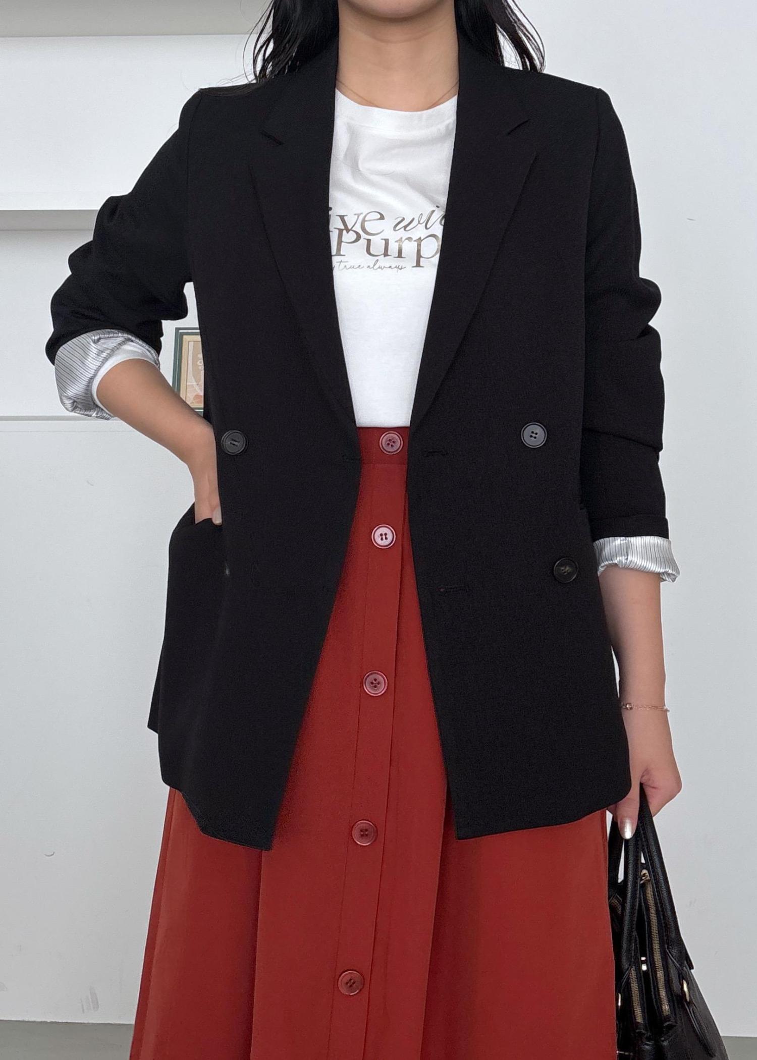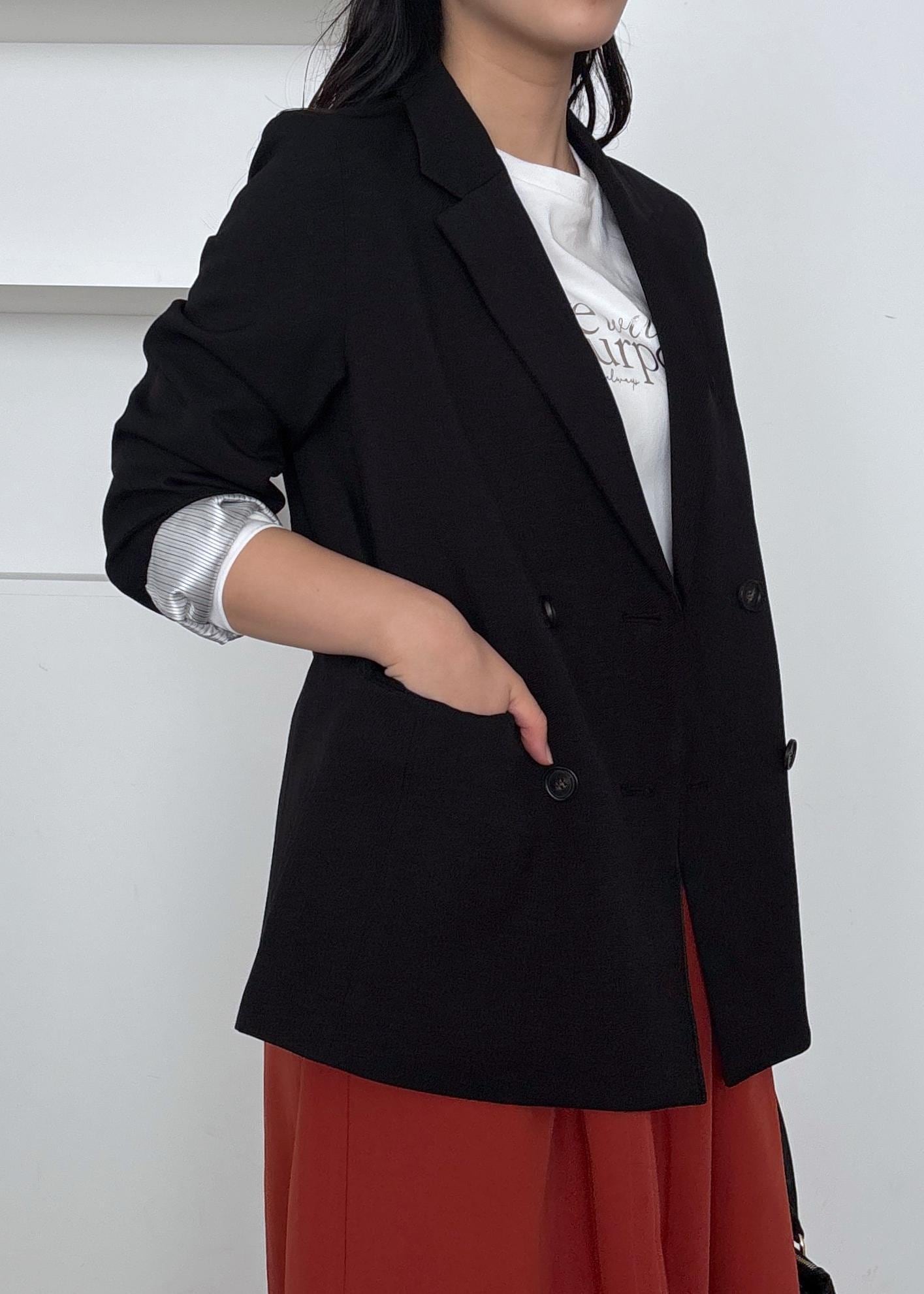 【美easy】ウーリッシュダブルブレストテーラードジャケット【セットアップ対応/洗える】