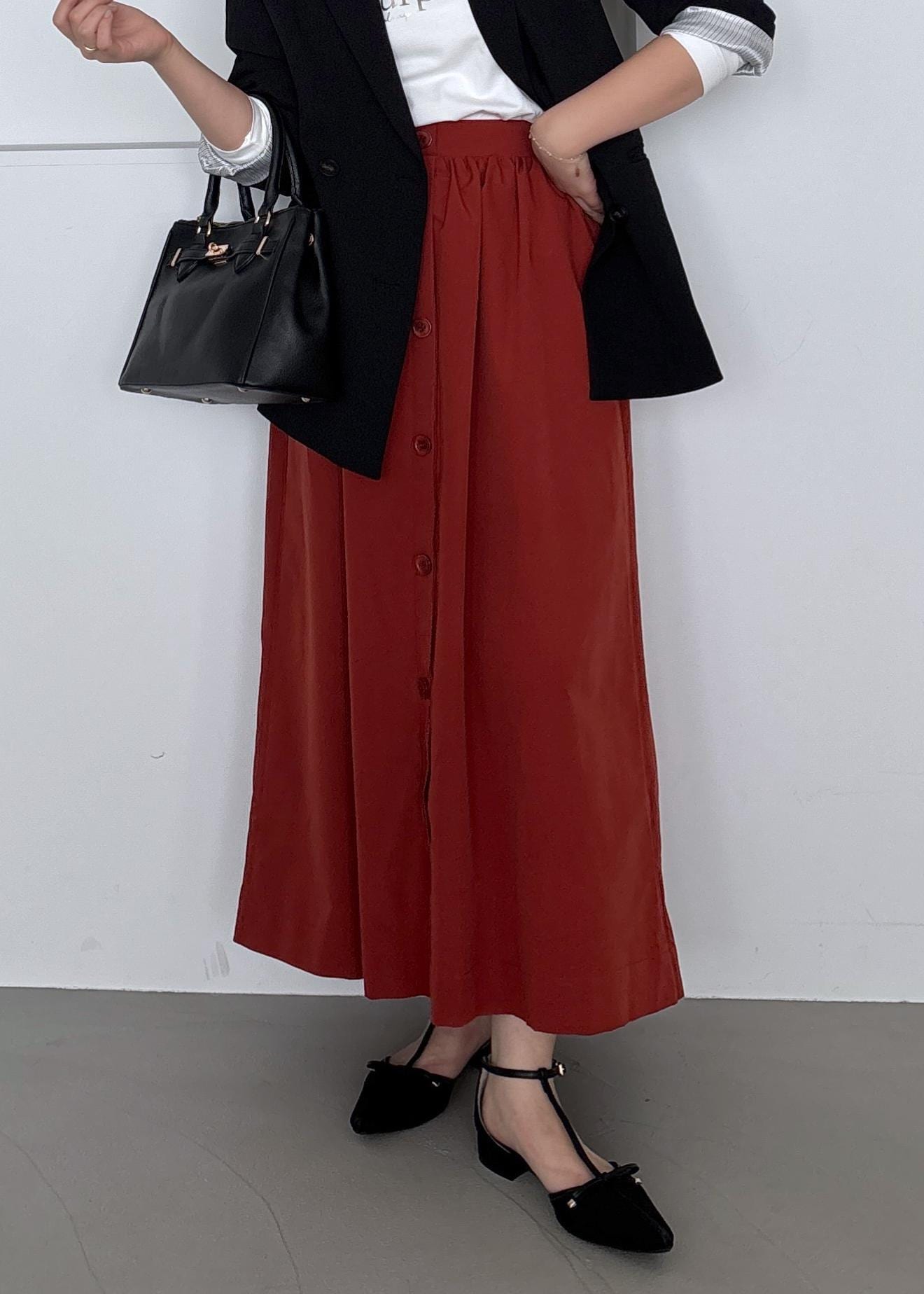 オレンジのスカートがアクセントになる綺麗めコーデ!