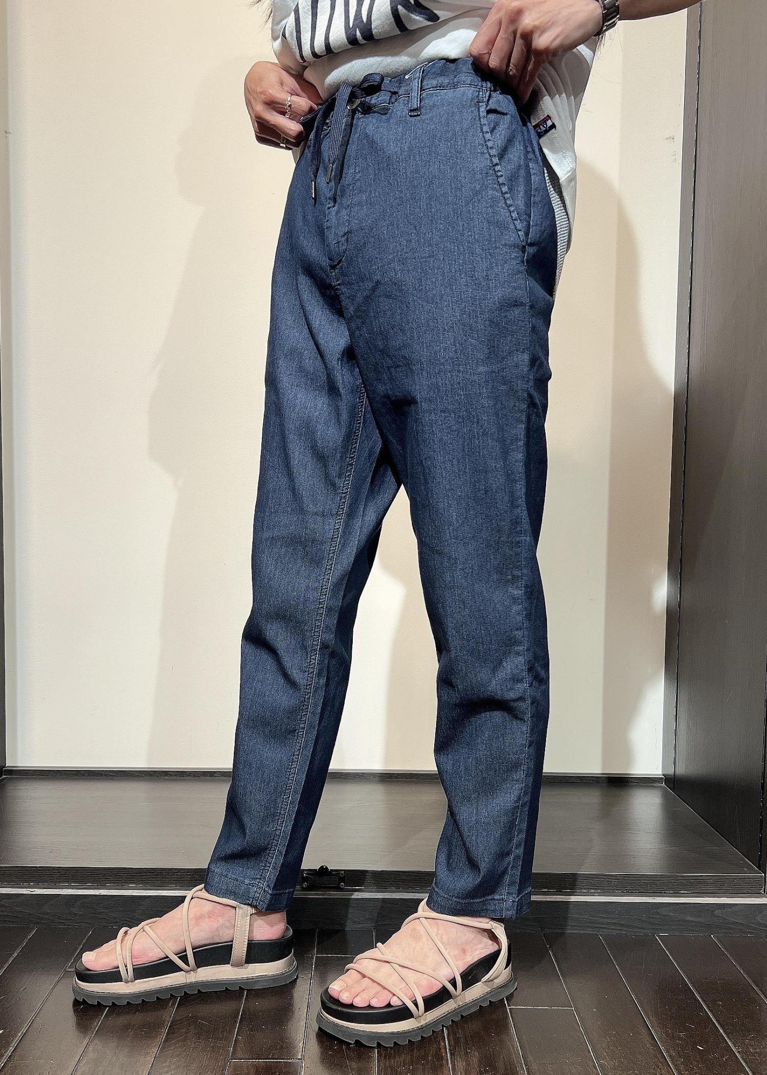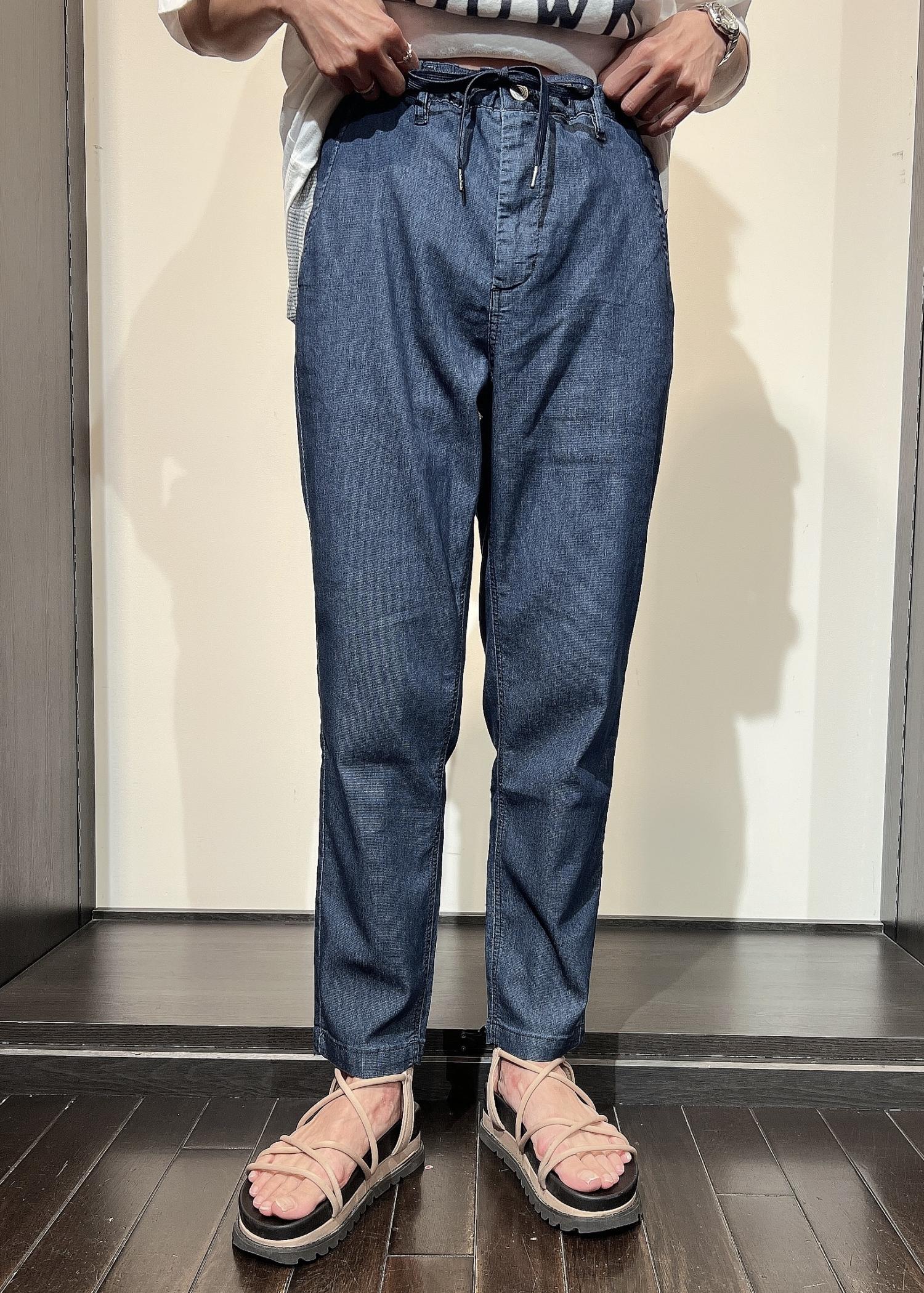 ヒップと太もも周りにゆとりがありテーパードされたシルエットで柔らかいデニムのような表情のイージーパンツです。