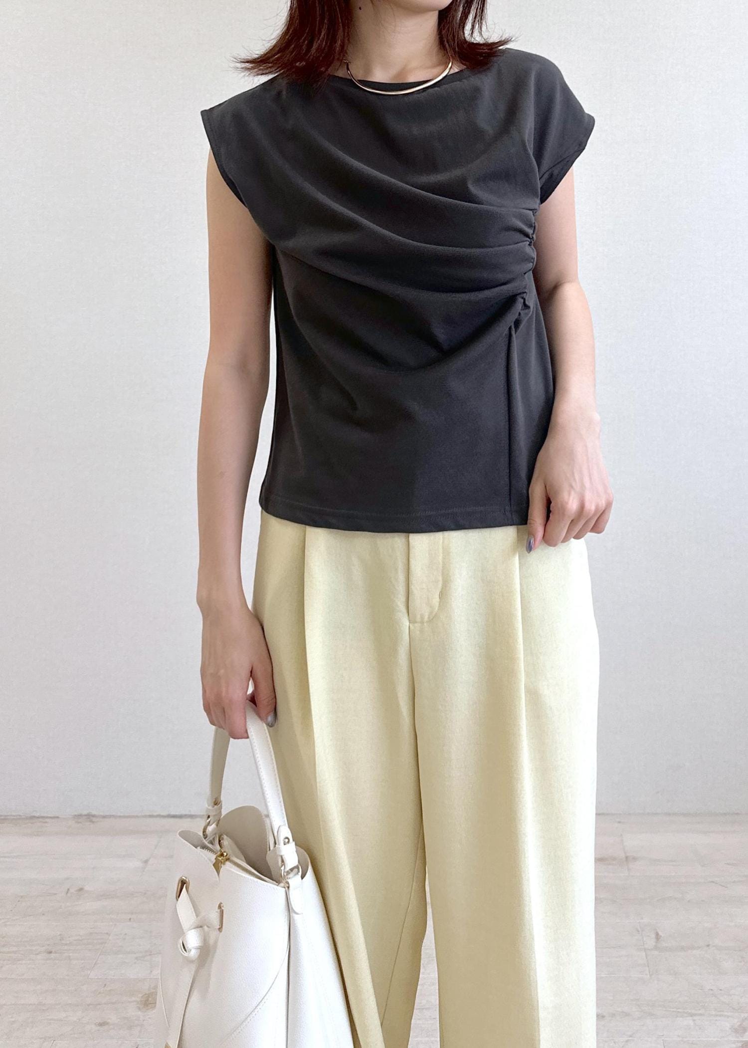 アウトレットVISアシメギャザートップスチャコール / F¥1,975レビュー1枚で着映えするデザイントップス。