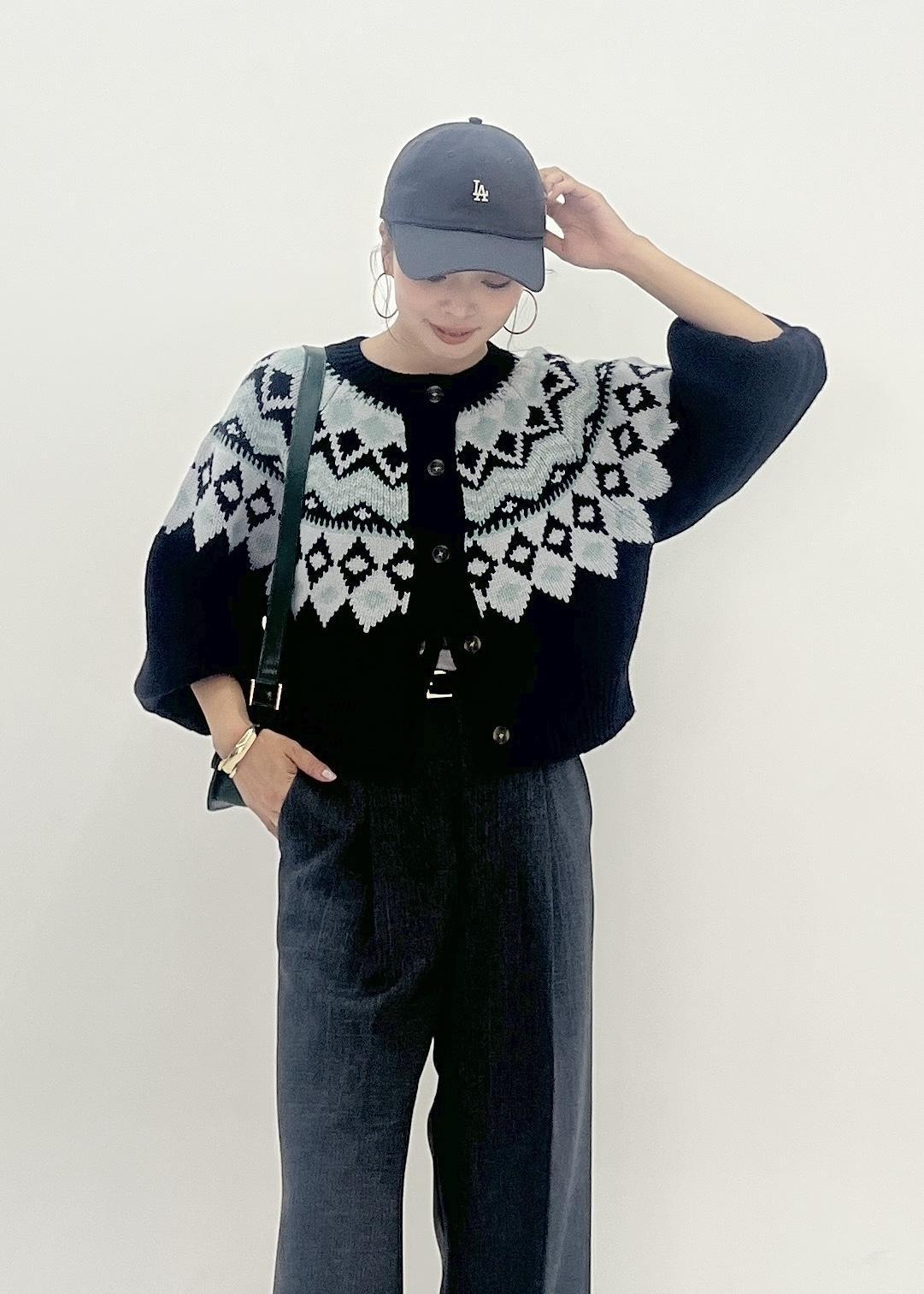 求心柄のニットカーディガンは1枚着るだけで秋冬コーデの主役に。