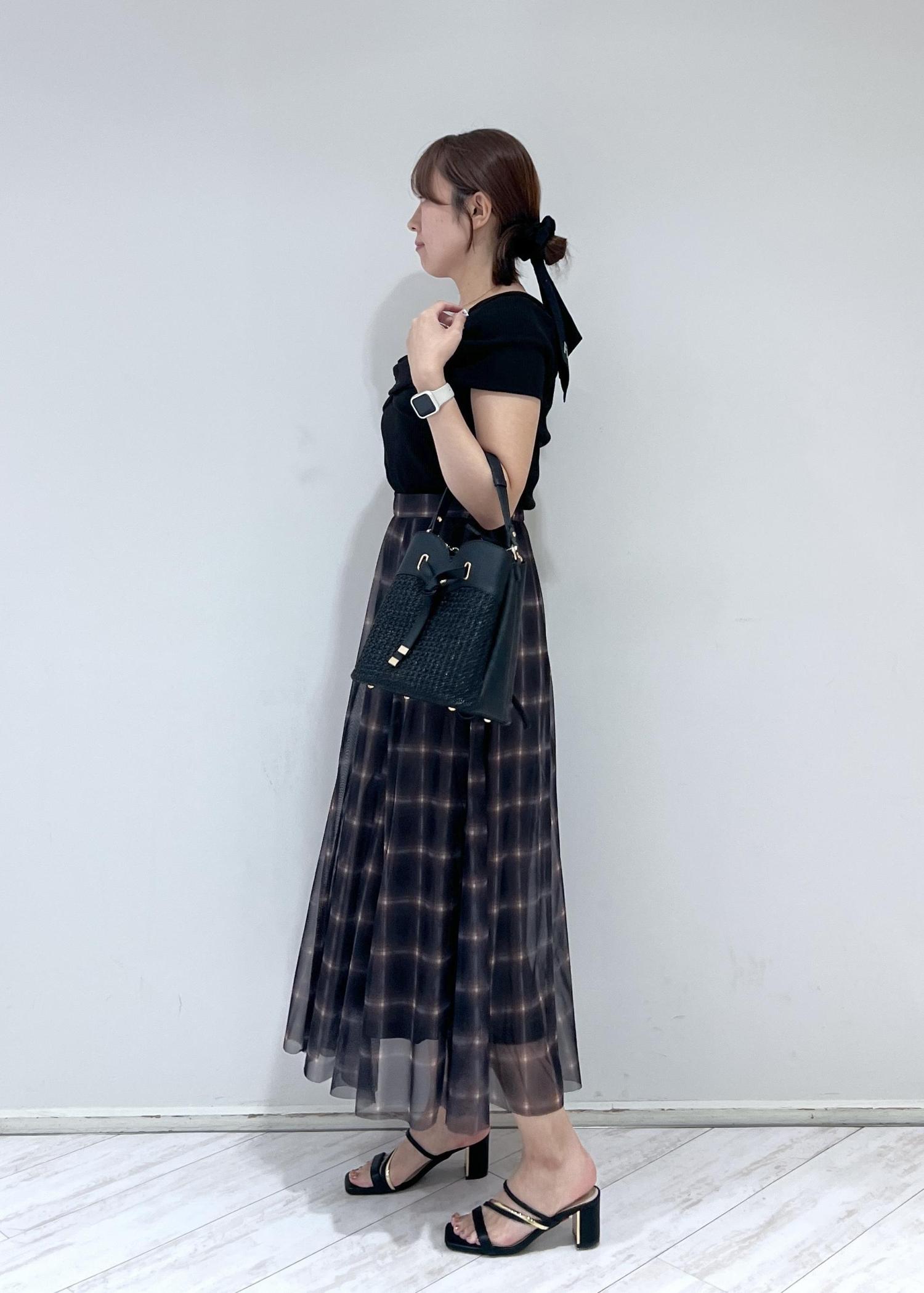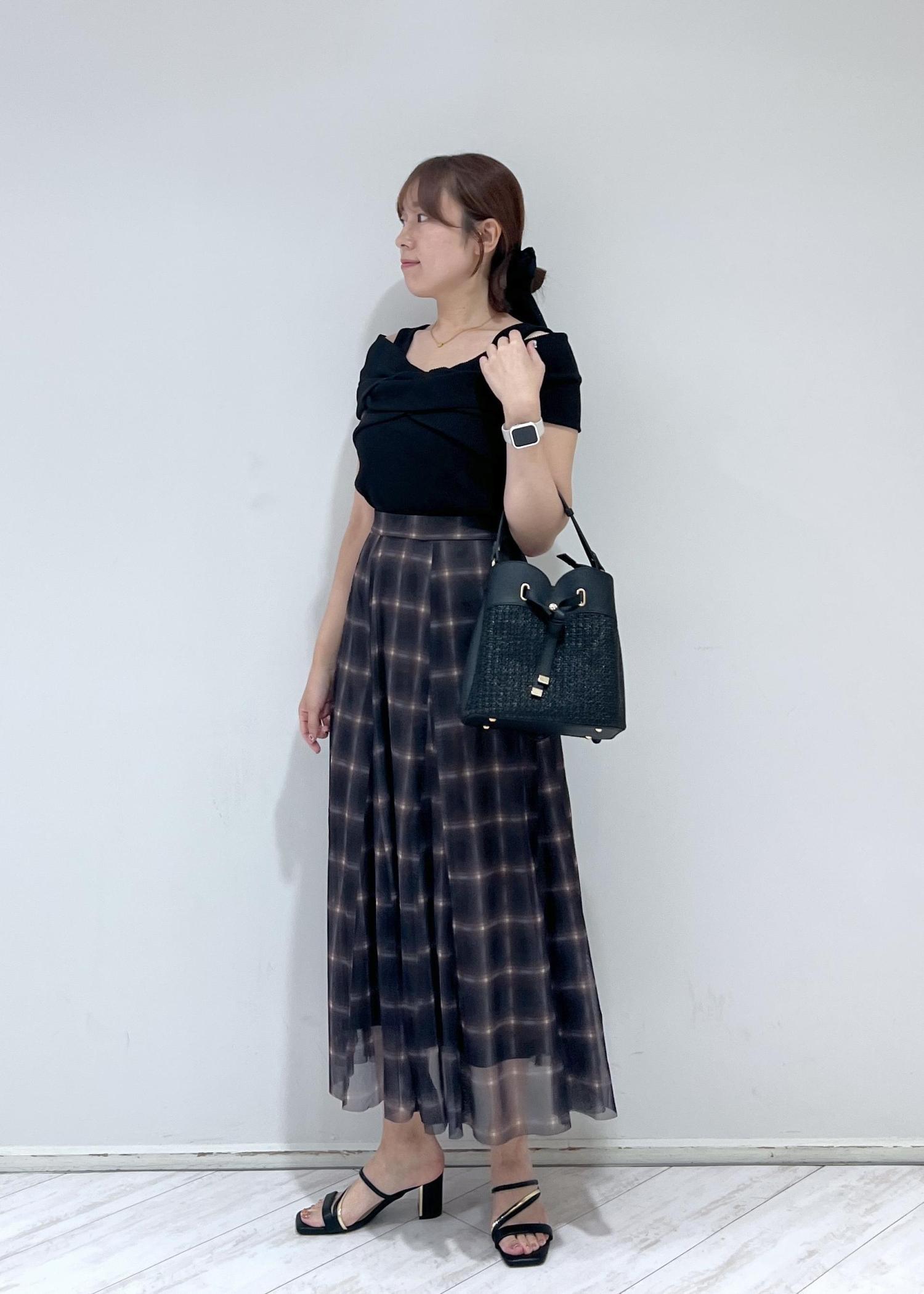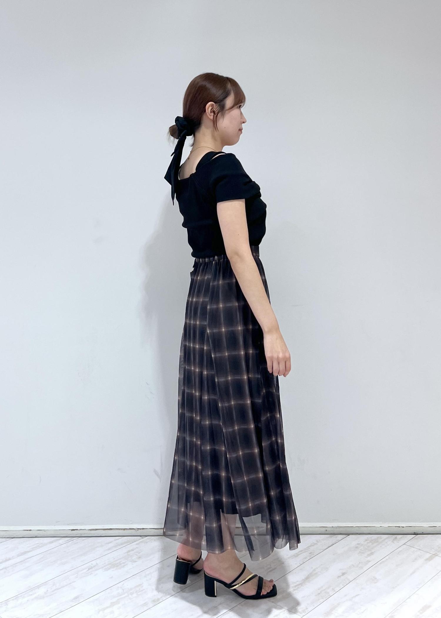 VIS【洗える】チュールプリントチェックスカートダークブラウン系 / F¥4,612レビューウエストの後ろはゴムなので着心地が楽です◎生地感は薄手なので秋口も着回せます。身長164cmで、着丈はくるぶしの少し上でした!