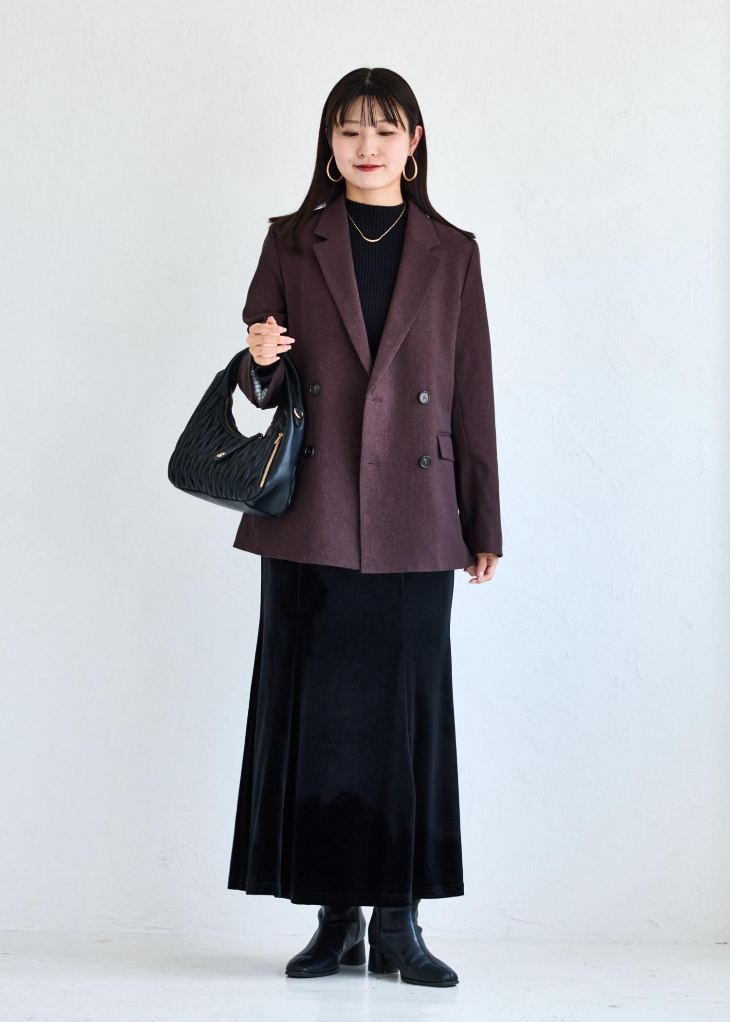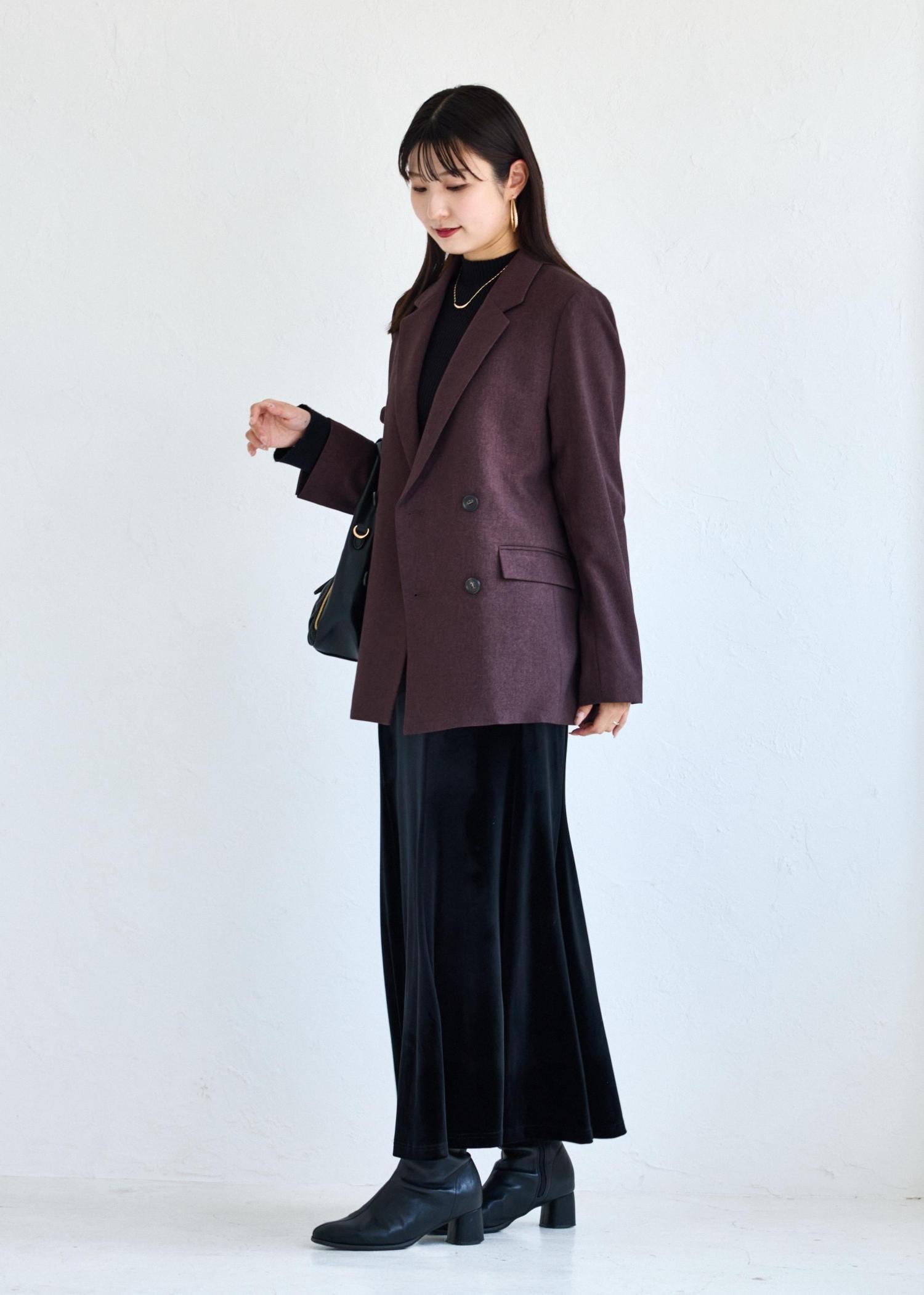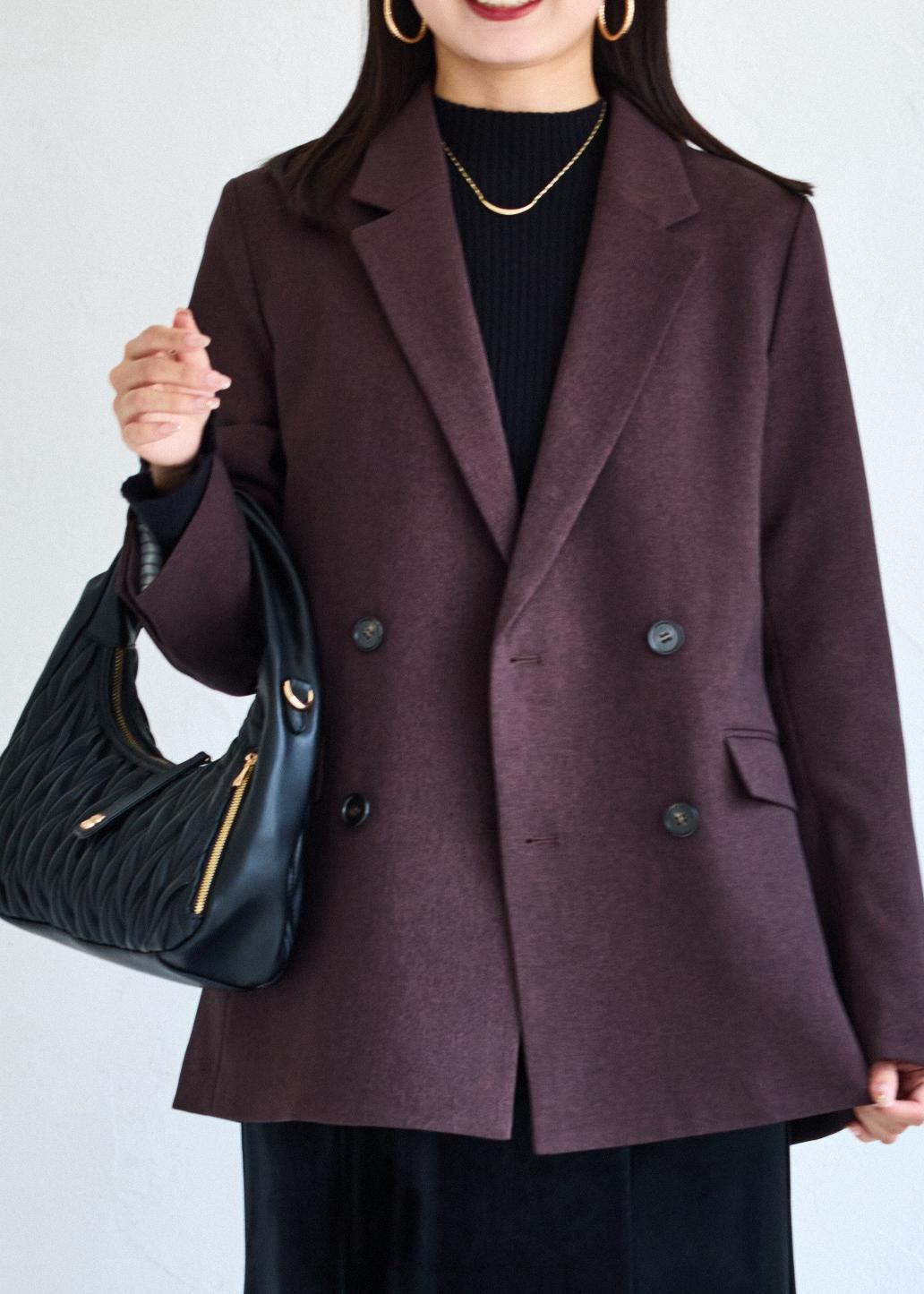 VIS【美easy】ウーリッシュダブルブレストテーラードジャケット【セットアップ対応/洗える】ダークブラウン / M¥8,899レビュー164cm、Mサイズ着用でヒップの隠れる丈感。
