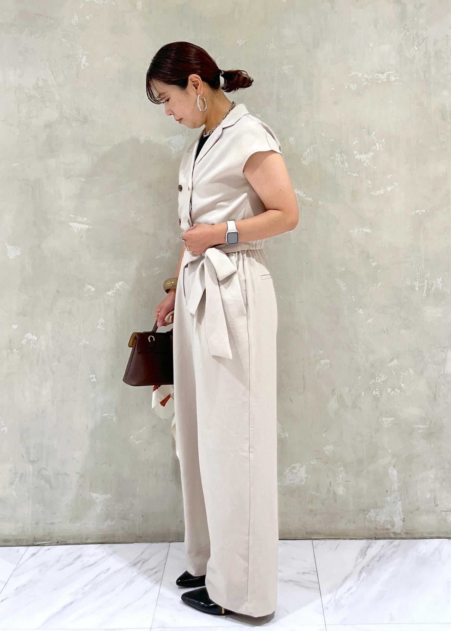 ベージュで柔らかい印象もあり、ウエストのリボンも女性らしくて◎