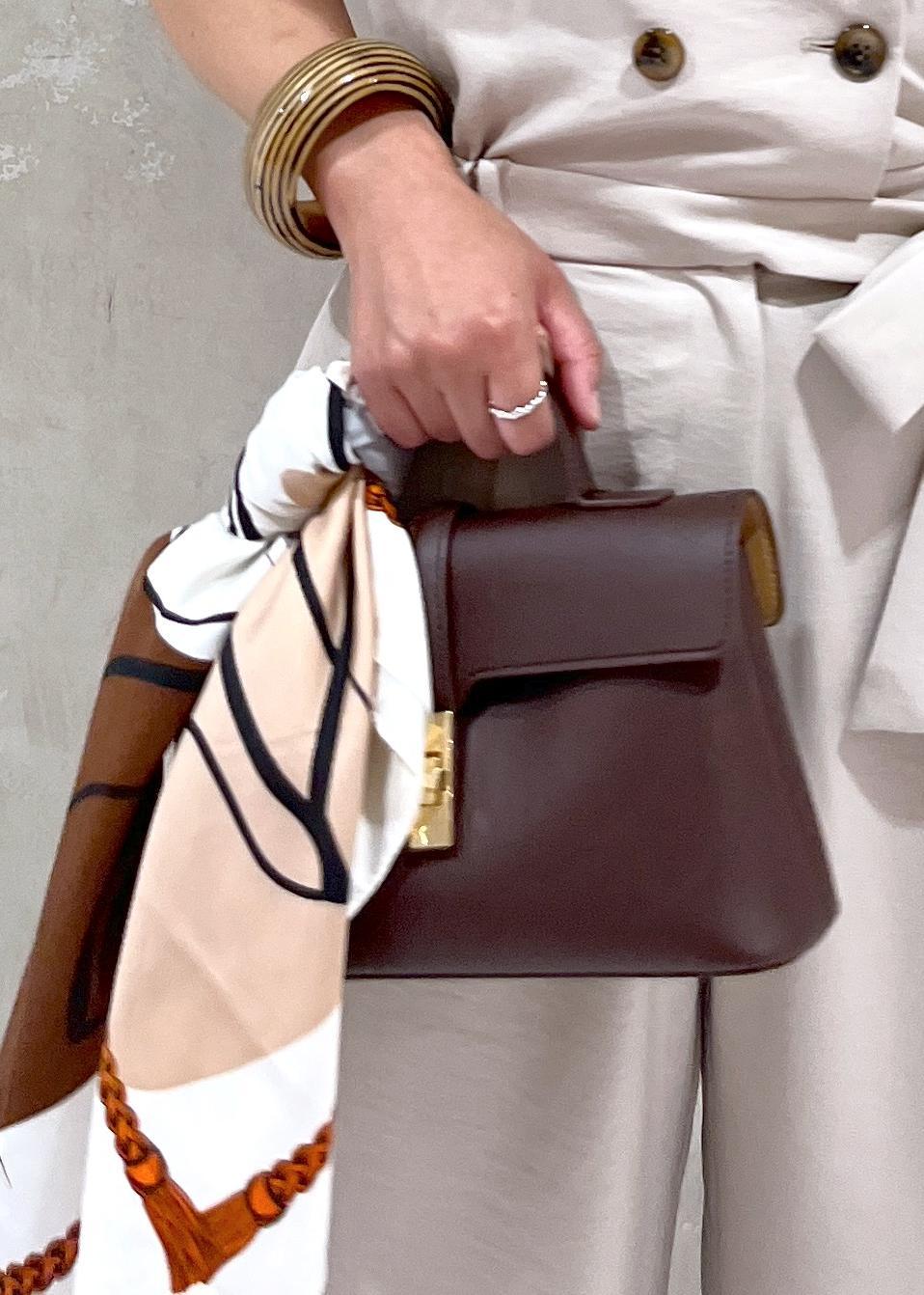 ショルダーが付いているので、斜め掛けでもワンハンドルでもお待ち頂け使いやすいです。 -