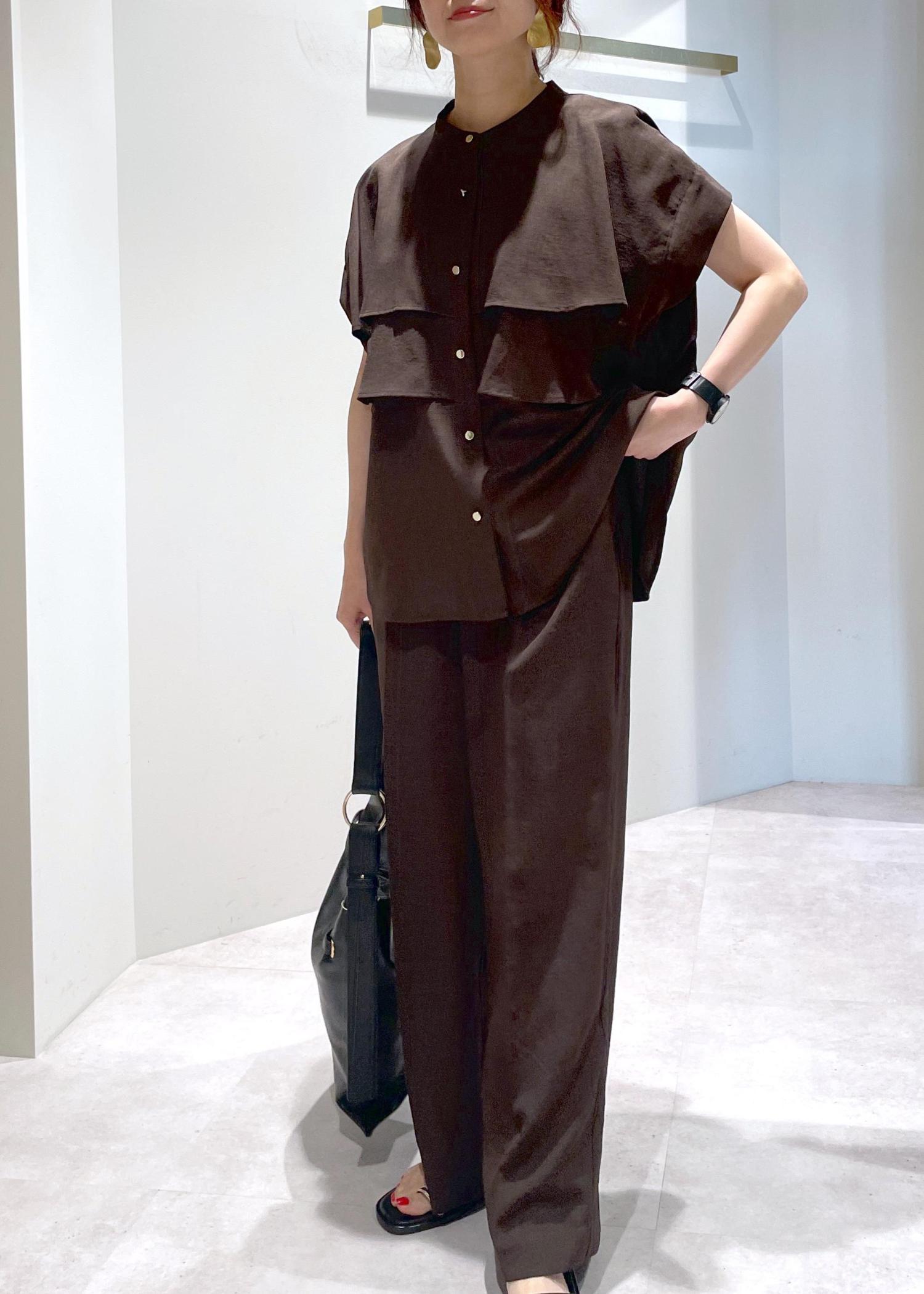 トレンドの新色ブラウンがとても大人っぽい雰囲気で今すぐから秋口まで長く着れます!
