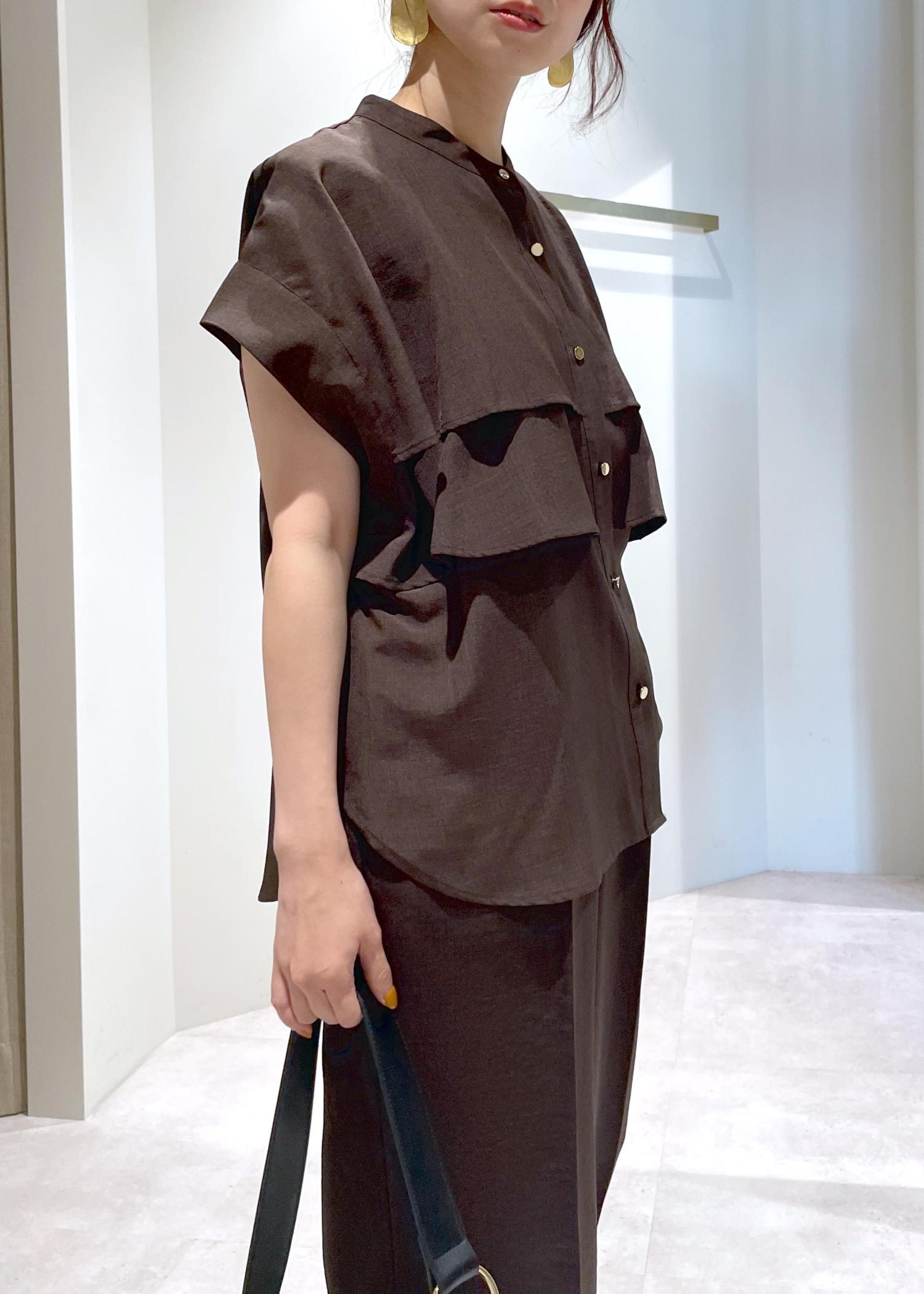 LE CERCLE par ropé【セットアップ対応】タンブラーブッチャータックフリルブラウスダークブラウン / F¥8,690レビュー大きなフリルが目線をあげてくれてスタイルアップして見えます!