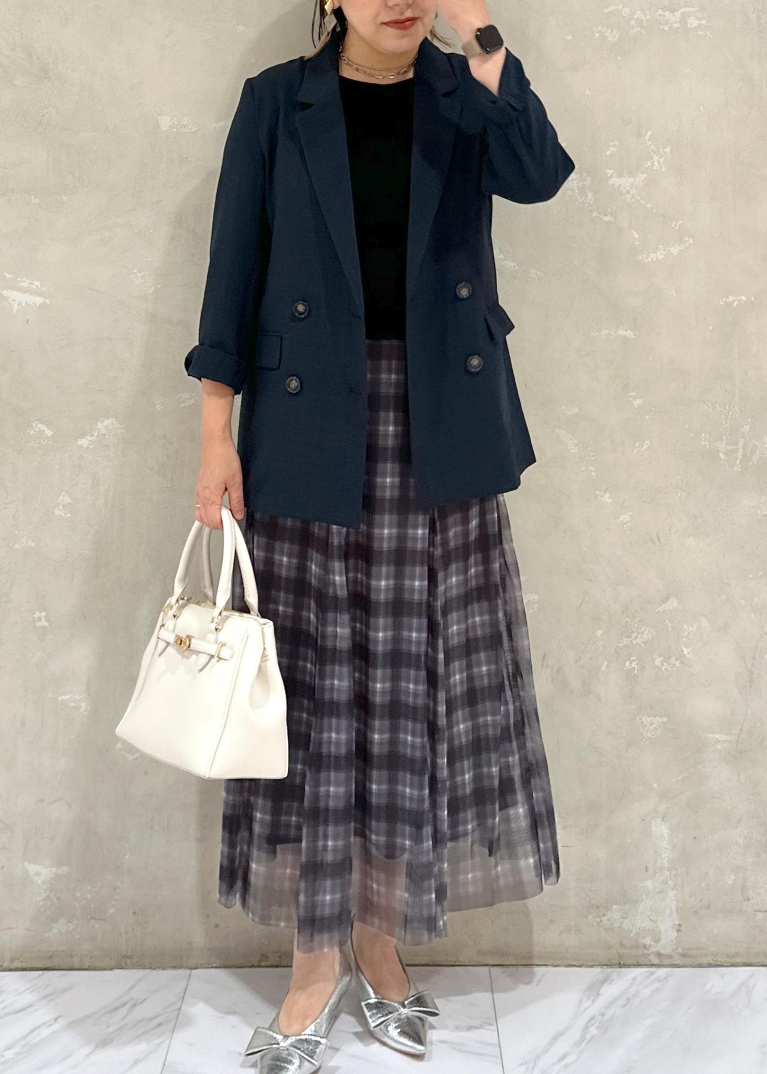 VIS【洗える】チュールプリントチェックスカートブラック系 / F¥4,612レビューサラサラな生地感で着心地最高なスカートです!