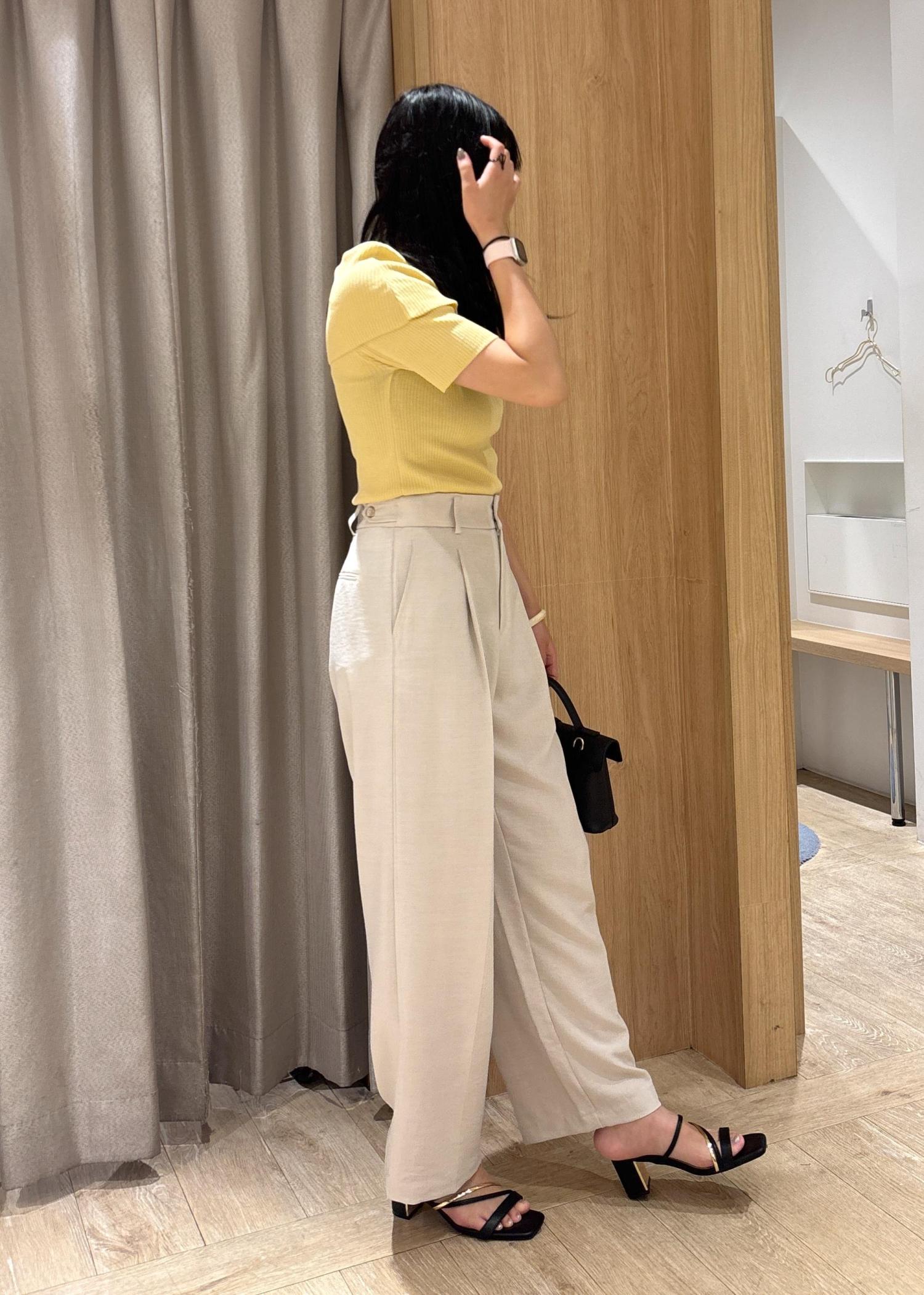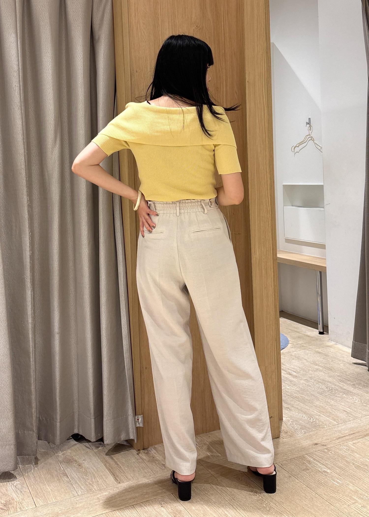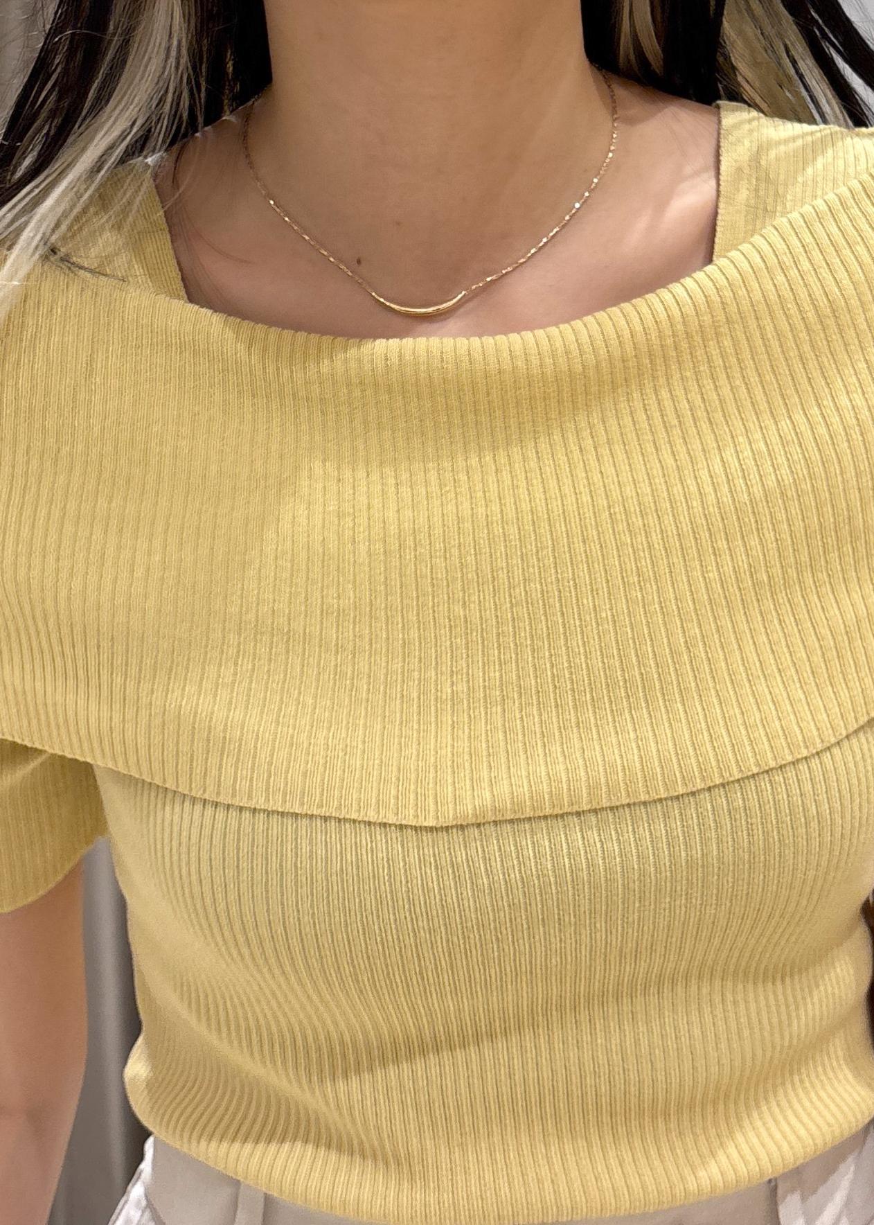 VIS【アンチピリング/UVケア/洗える】オフショルハーフスリーブニットイエロー系 / F¥4,939レビューオフショル風の半袖ニットを着用しました!
