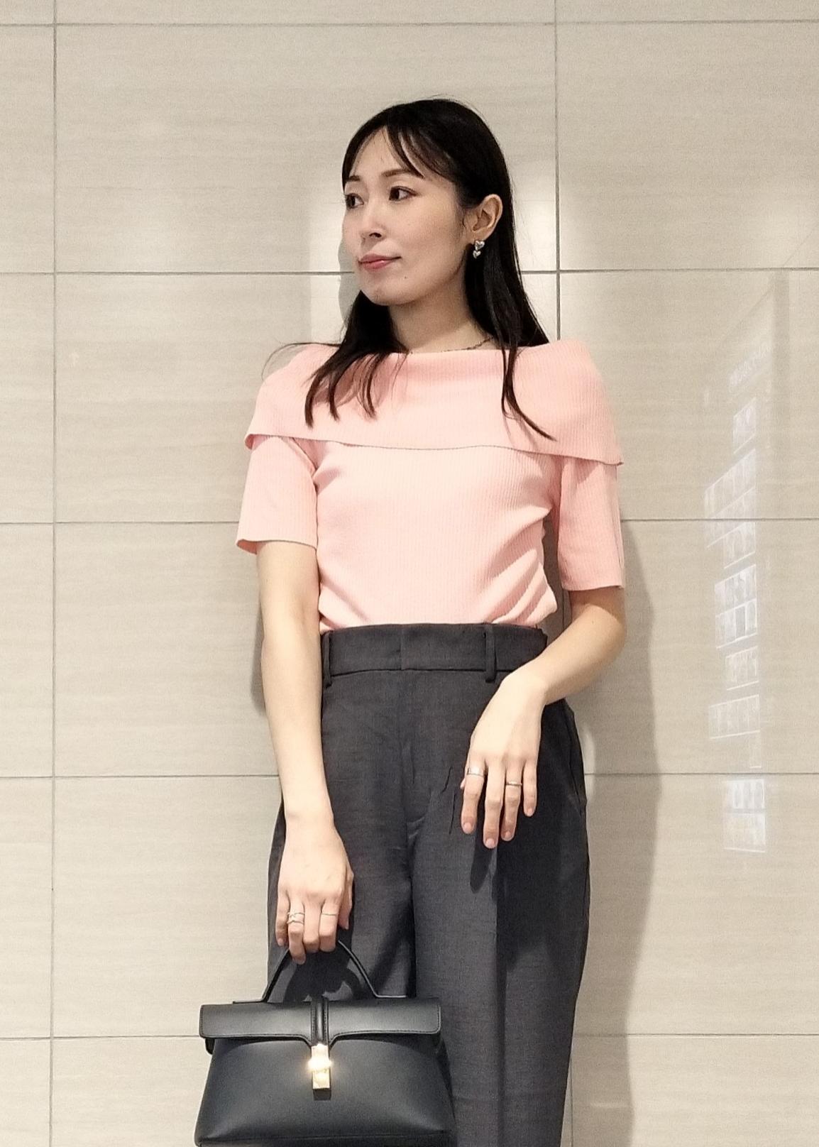 伸縮性のある柔らかいリブ素材が着やすいですよ〜♪ -