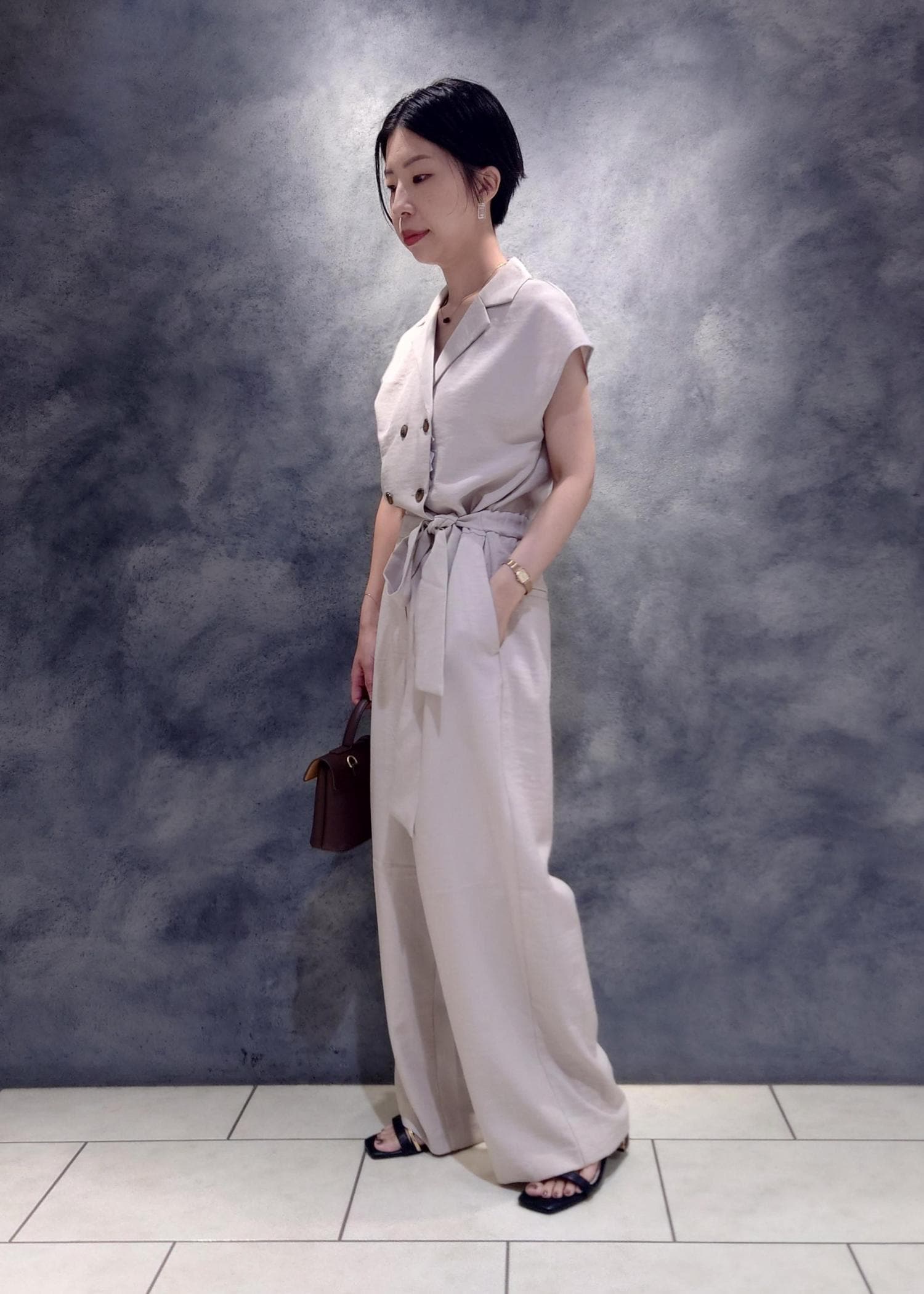 VISエアタン加工リラックスロンパースベージュ系 / F¥5,339レビュー一枚でサマになるオールインワンです☆