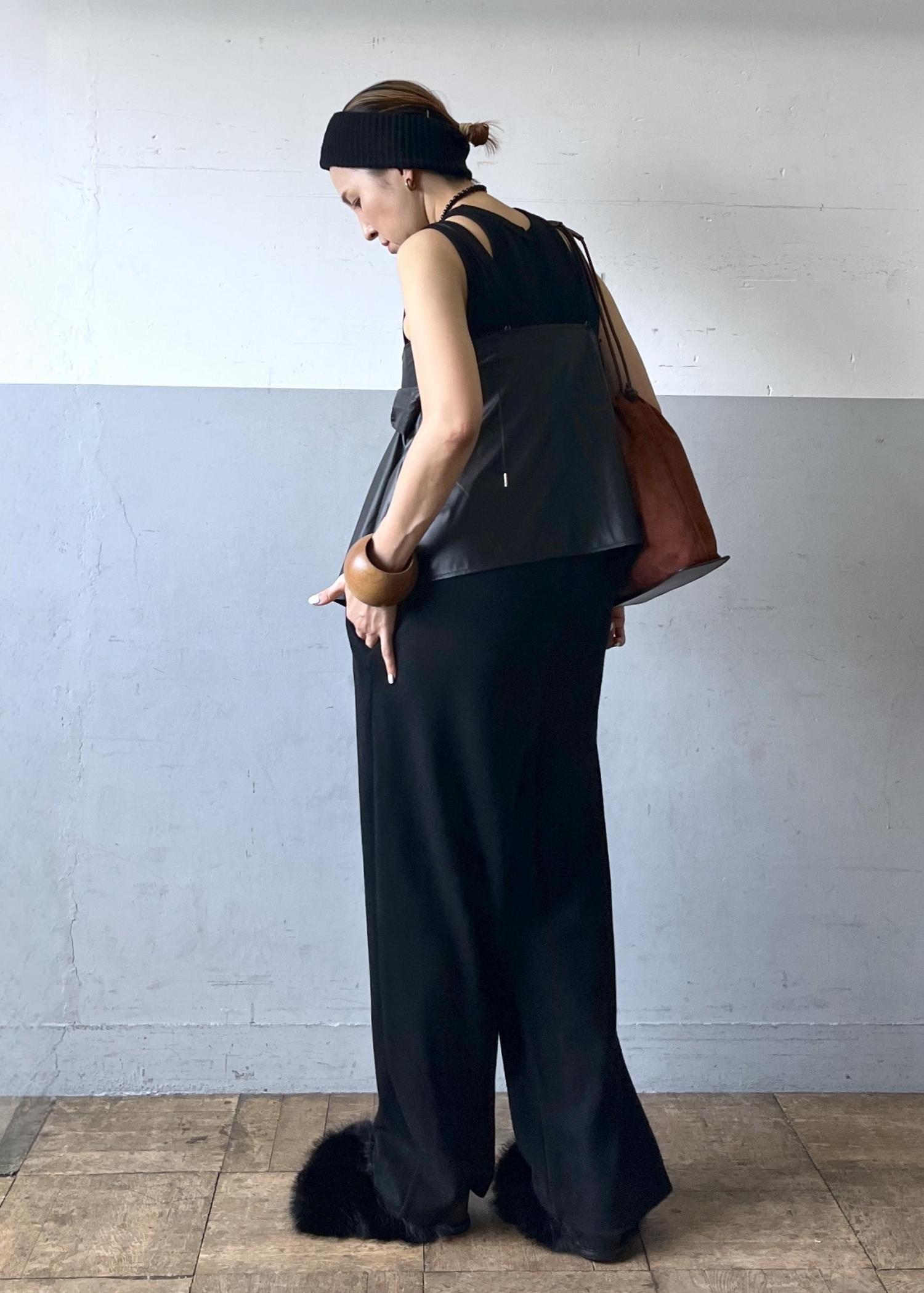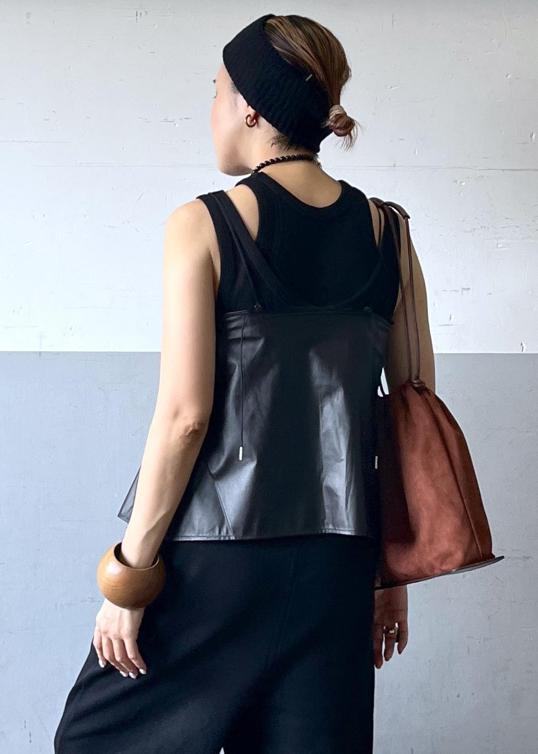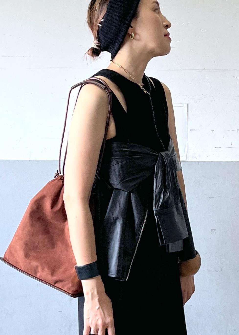 ブラックのワントーンもレザーのような素材を合わせるだけでモード感高まります♡とても軽いのも嬉しい♫