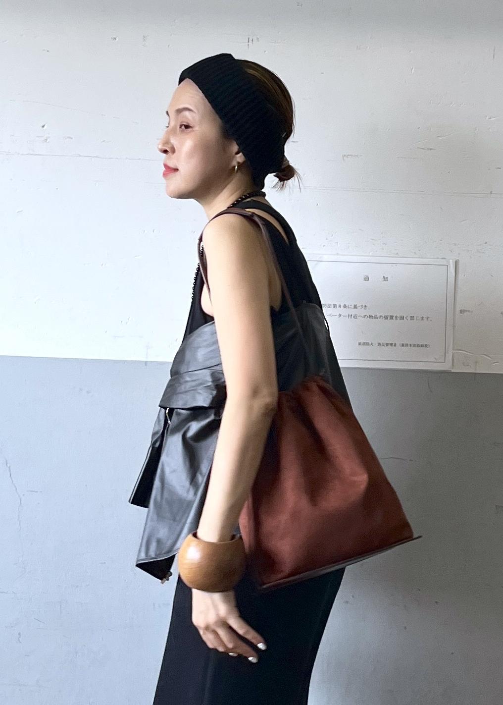 ADAM ET ROPÉ FEMME【サステナブル】アーティフシャルレザー巾着バッグレンガ / F¥13,860レビュー持ち手の長さが2wayでとても便利!縦長なので折り畳み傘やペットポトルも楽々入ります♫素材感も高級感があって良いですよ♪