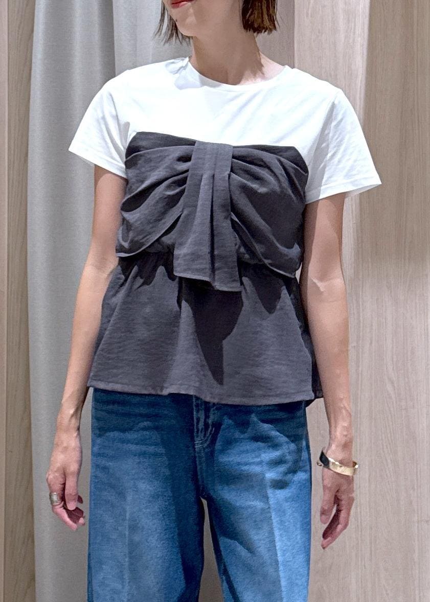 VIS【新色追加】【美easy】ねじりリボンTシャツドッキングプルオーバー【接触冷感/洗える】チャコール / F¥5,489レビュー身長166センチでお尻半分隠れる長さでした。