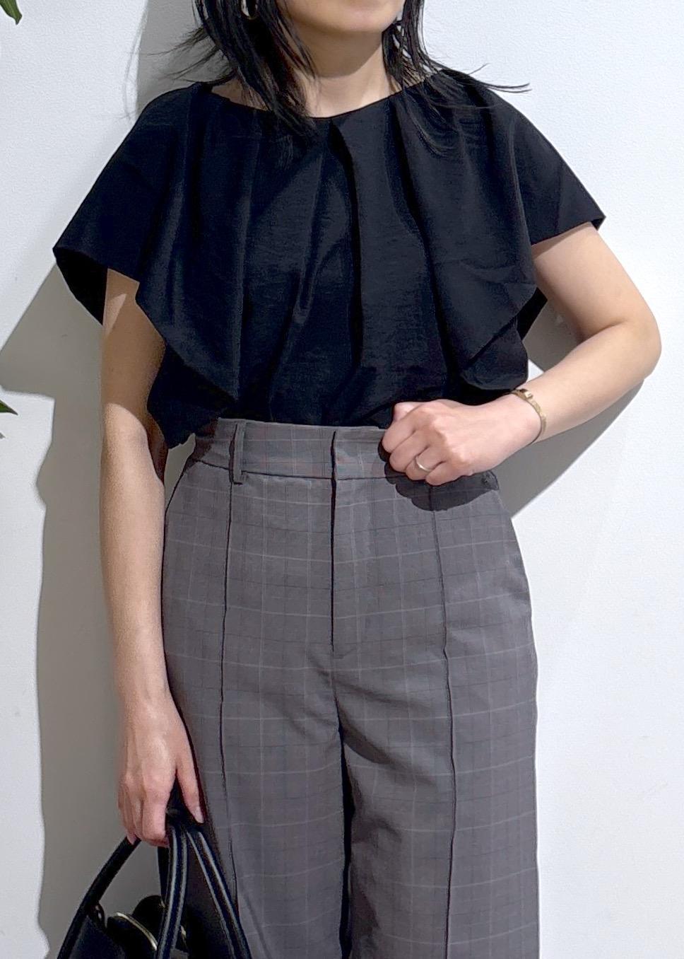 ラッフルスリーブが可愛いブラウスを使ったお仕事コーデです。