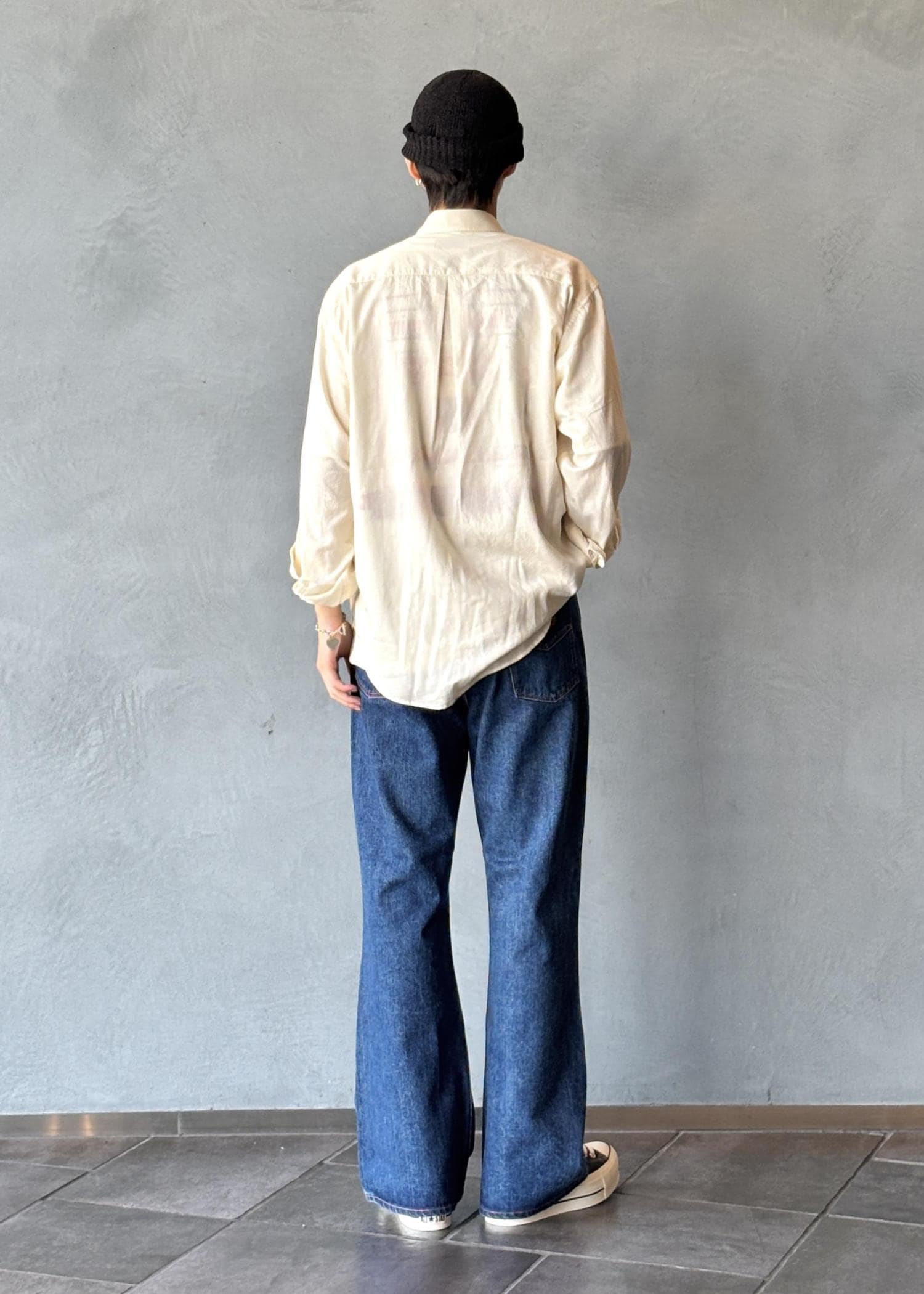 透け感のある上品なシャツにフレアデニムでキレイめなカジュアルコーディネートに仕上げました✨️