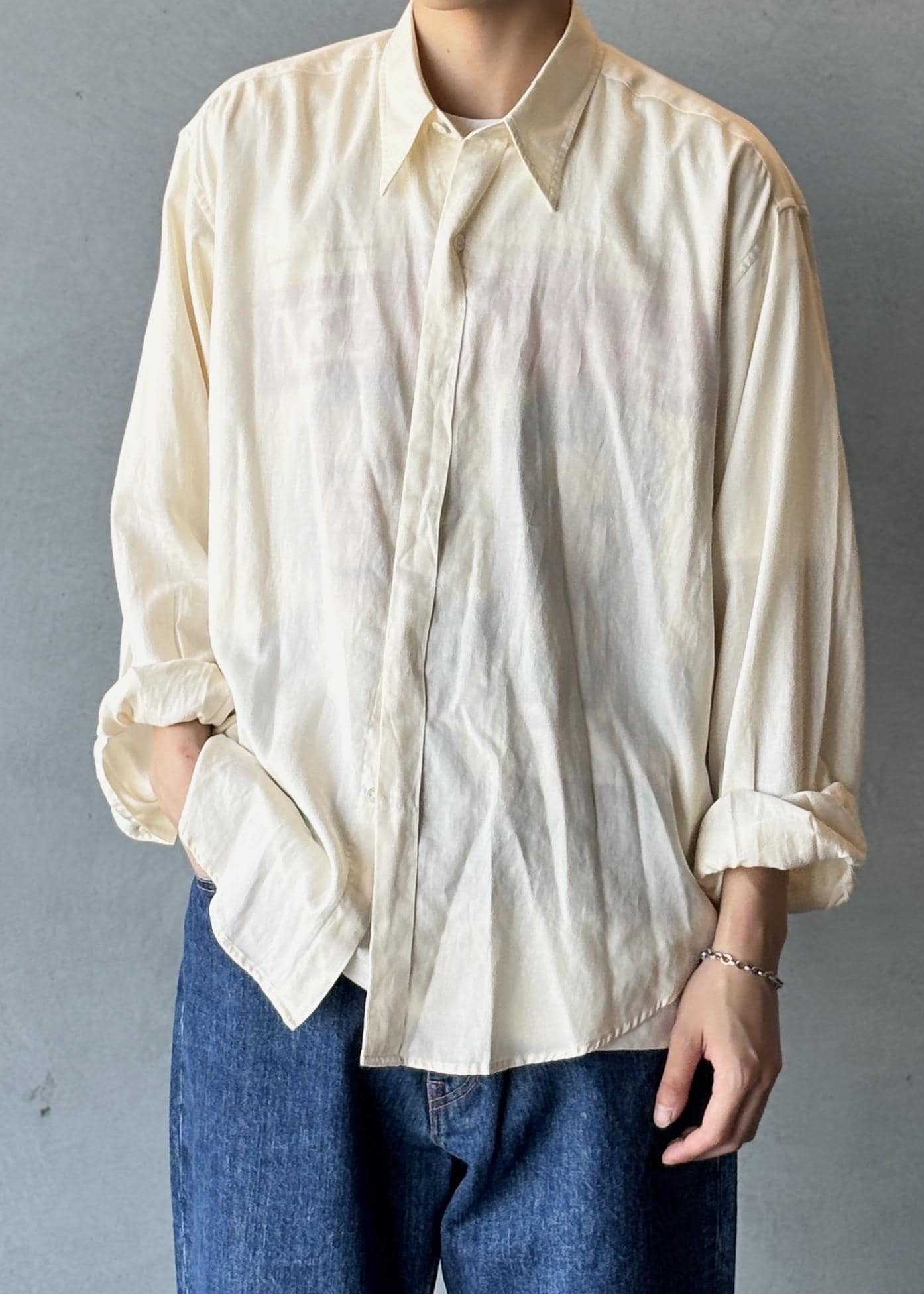 ゆったりとしたサイズ感でカフスが少しタイトな感じ。