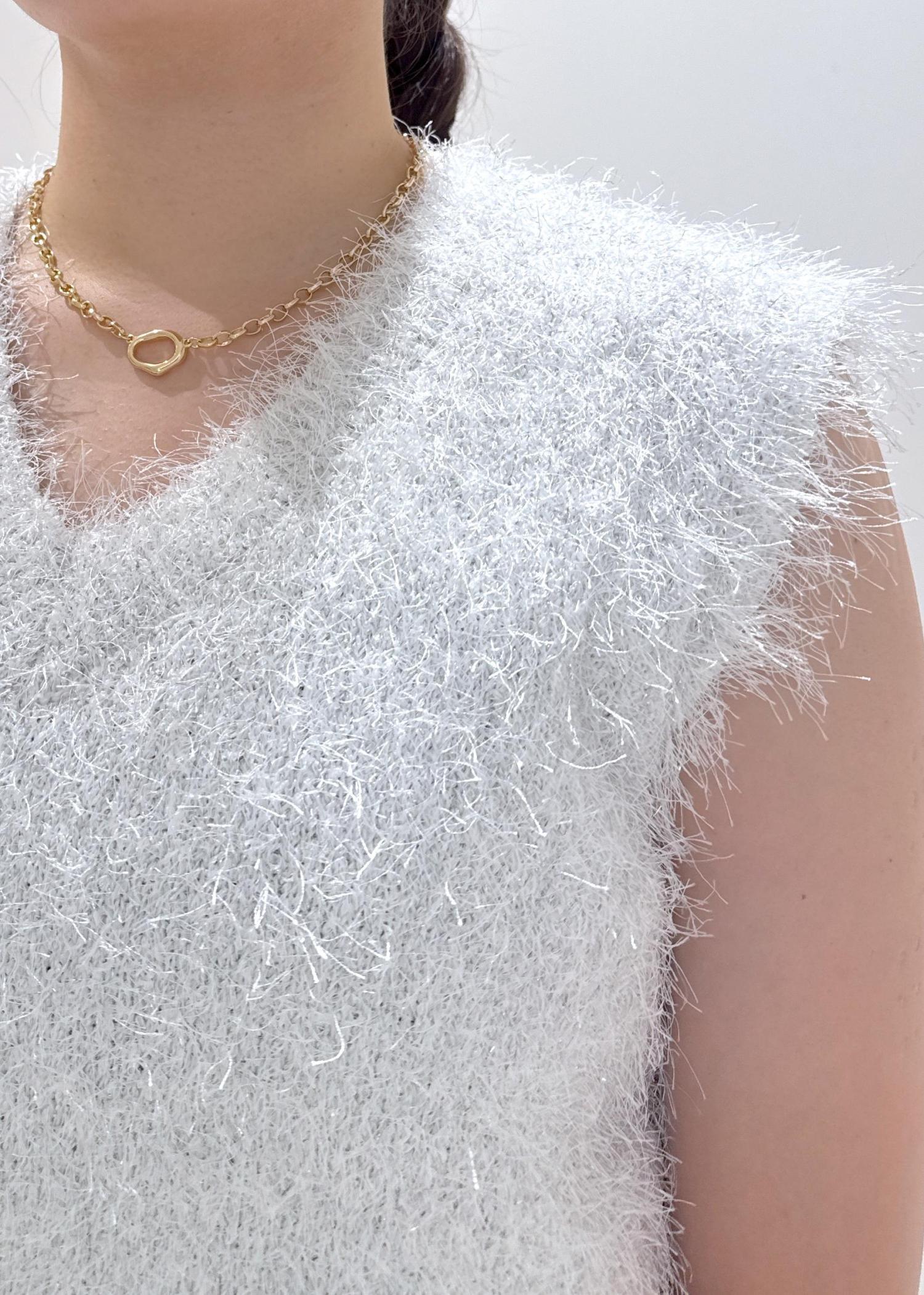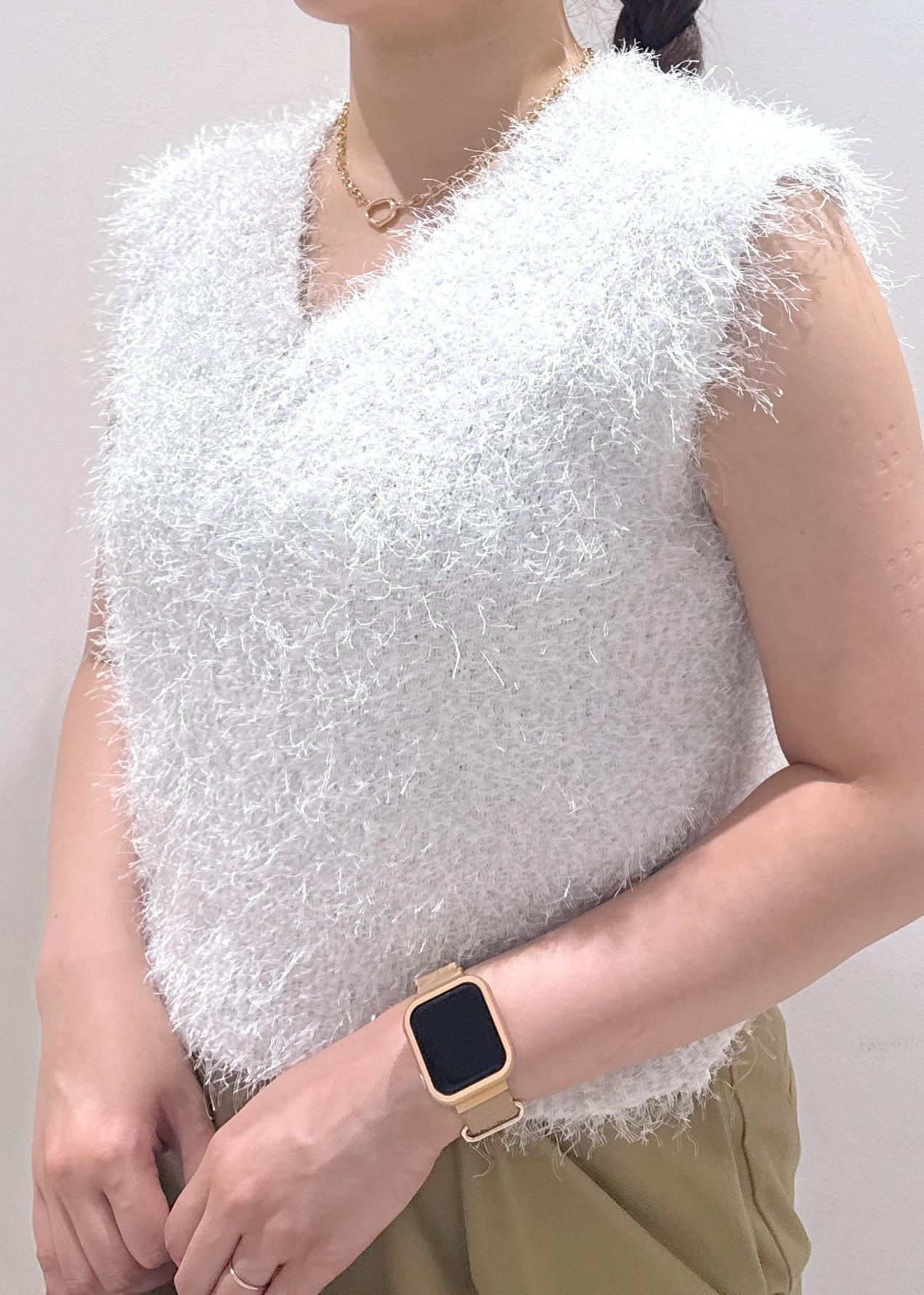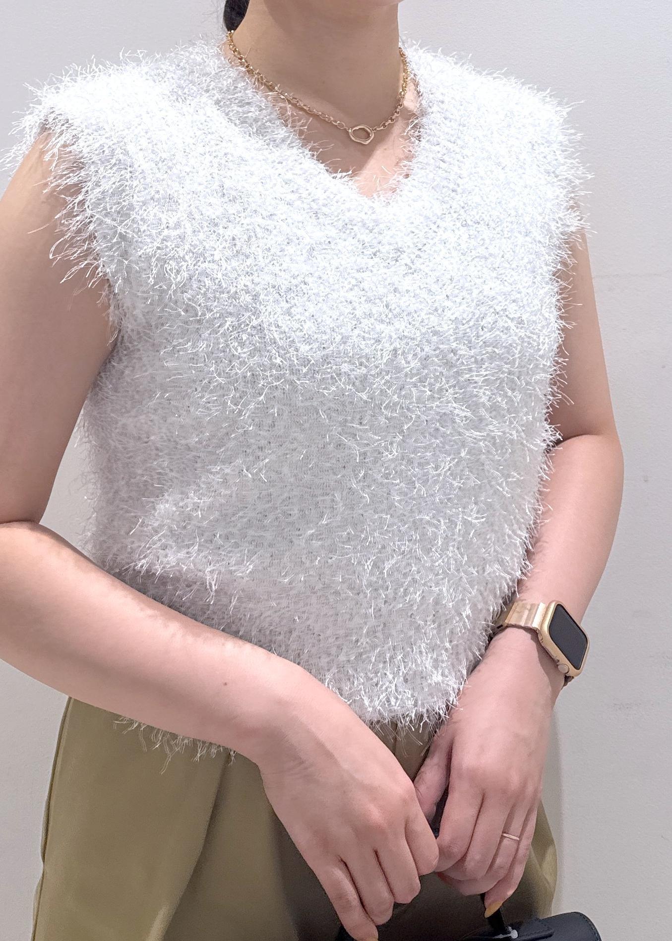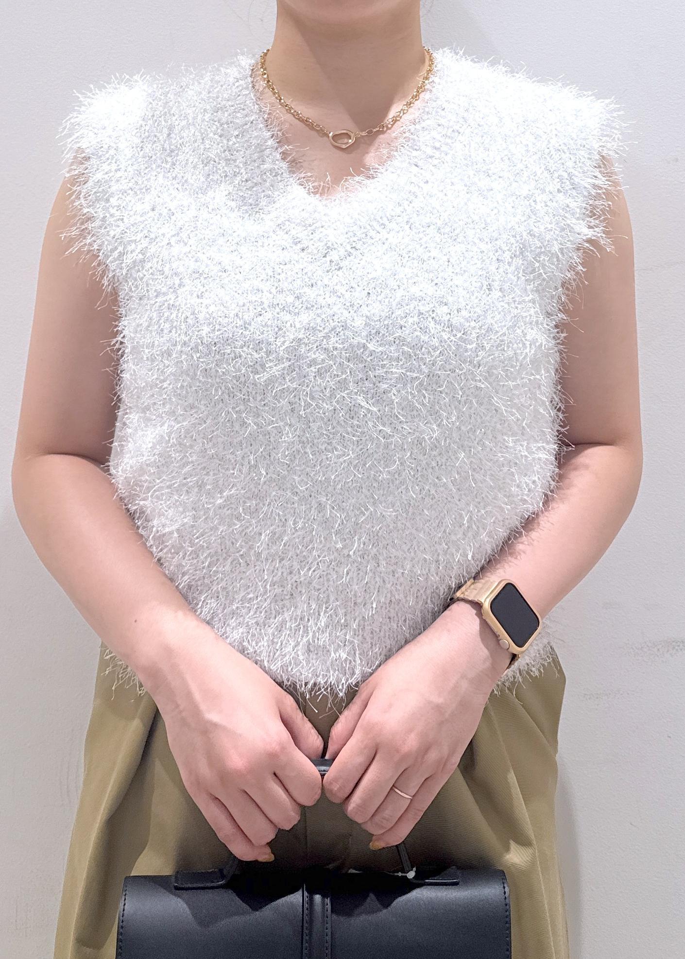 少し秋を意識したラメ入りのフェザーニット