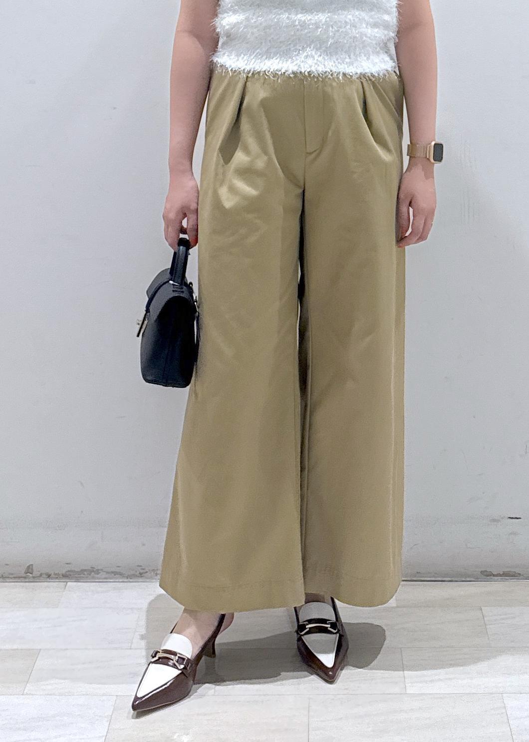 綿素材ですがポリエステルも入っているのでシワ感などは気になりませんでした!スチームかければ綺麗に伸びます。ハイウエストなので、脚長効果抜群です◎