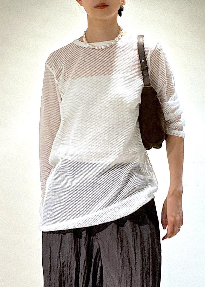 長い夏に重宝するメッシュトップス。