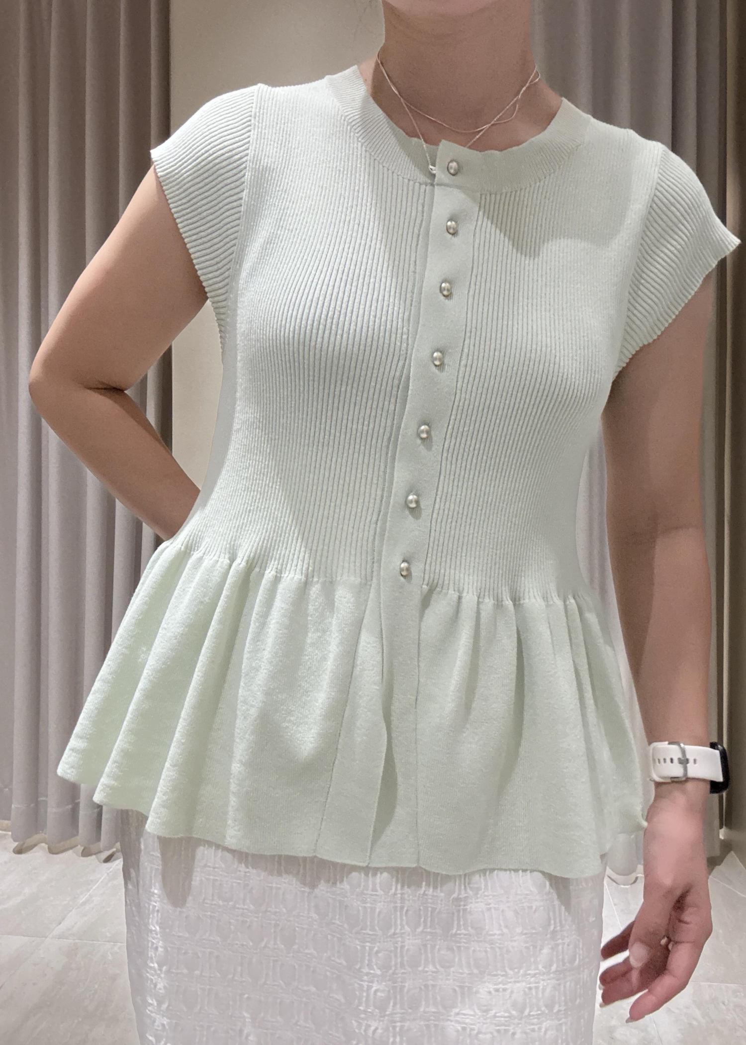 VIS【アンチピリング/洗える】美SMARTショートスリーブペプラムニットライトグリーン / F¥5,489レビュー柔らかくて薄い生地感なのでニットですが着膨れせずに本当にシルエットが綺麗です。