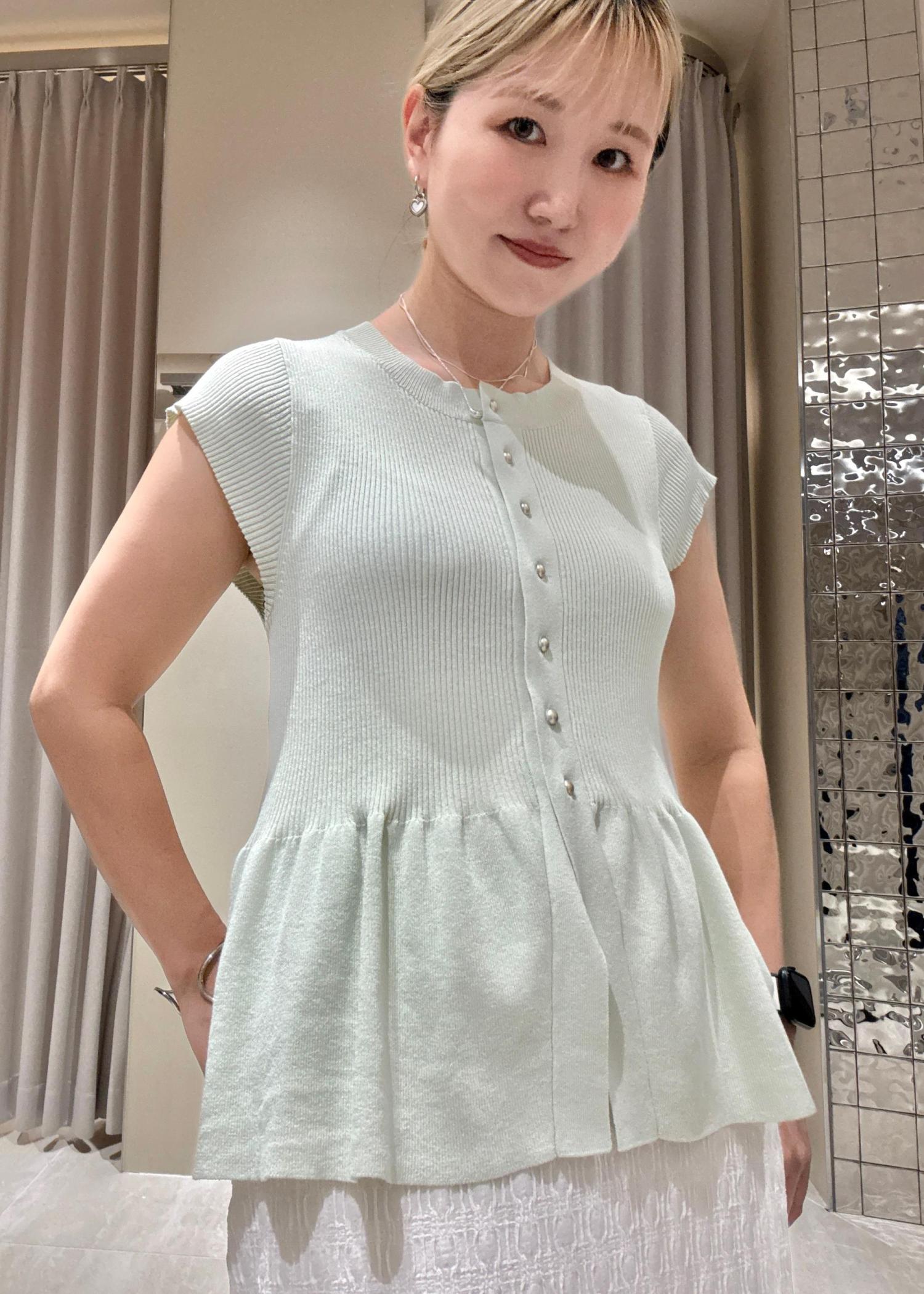 広がりすぎないペプラムニットは骨格ウェーブ大優勝です。